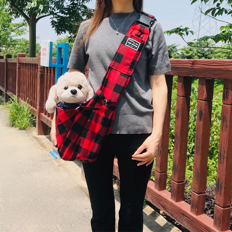 Сумка для домашних животных с пряжкой, регулируемая, в красную и черную клетку