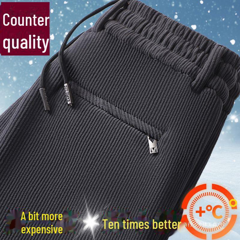 Мужские деловые брюки осень/зима из вельвета с эластичной резинкой на талии — плотные, теплые, плюс бархат, прямого кроя