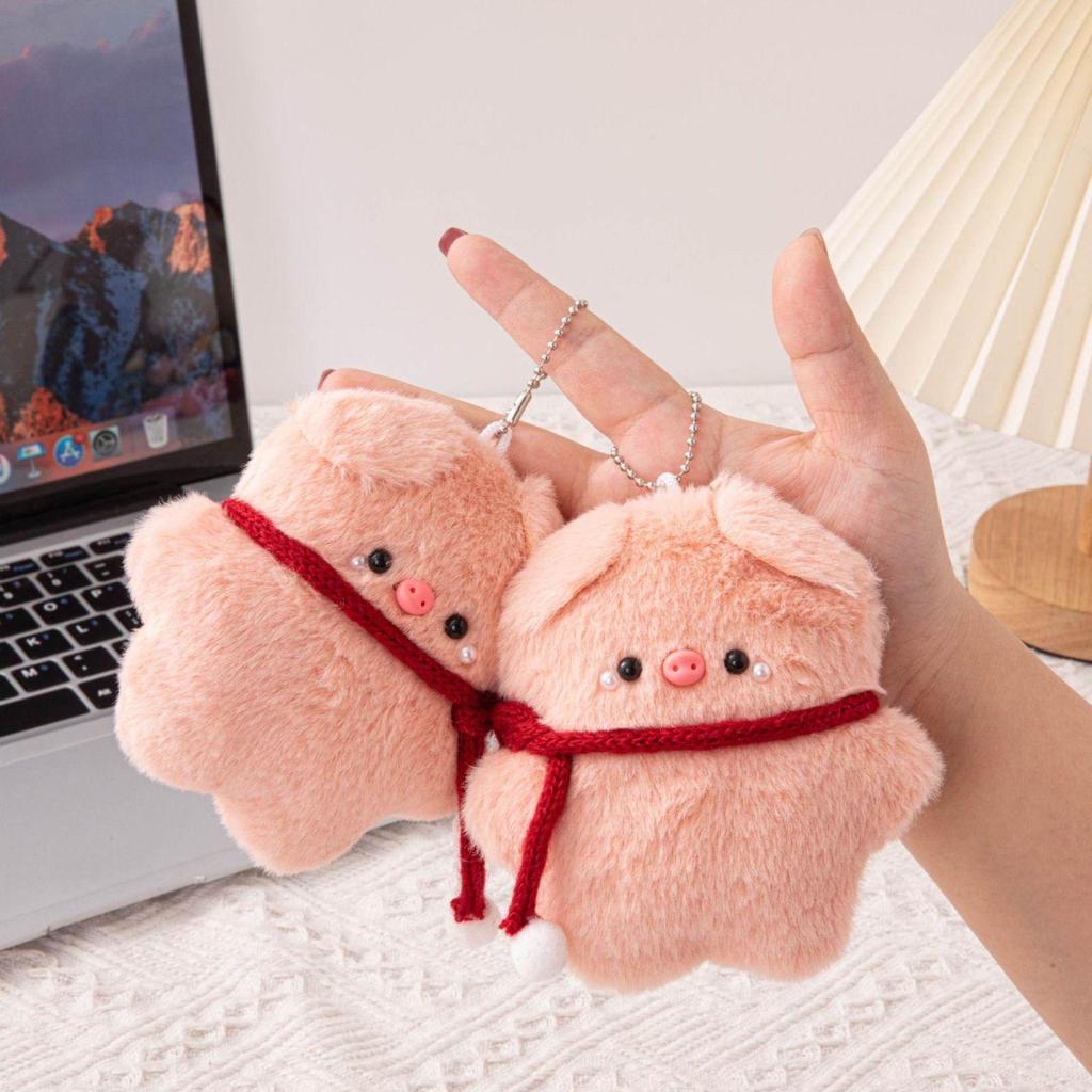 Розовый плюшевый рюкзак и подвеска в виде свиньи: Милый брелок для девочек и пар