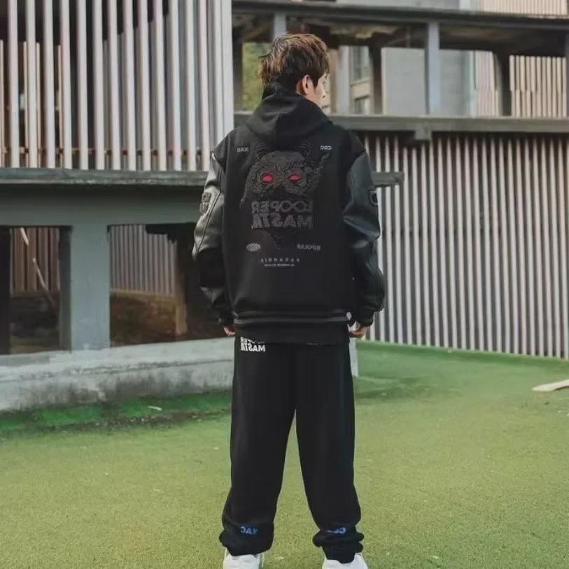 Унисекс ретро-куртка для бейсбола High-Street Cotton: Модный, свободный крой, с длинными рукавами для осени и зимы