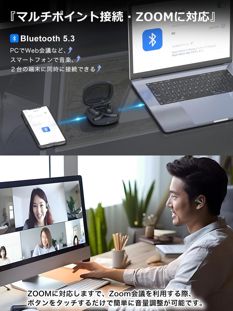 [Многоточечное подключение/шумоподавление вызовов ENC] Поддерживает беспроблемное многоточечное подключение, позволяющее подключаться к двум устройствам одновременно, например, слушать музыку на смартфоне и проводить веб-конференции на ПК. Оснащен функцией шумоподавления при вызове ENC, эффективно снижает внешний шум и посторонние шумы. Вы можете наслаждаться чистым звучанием звонков без посторонних шумов, таких как шум окружающей среды или шум транспорта, которые могут помешать разговору через наушники.