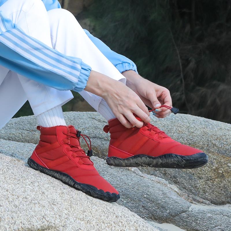 Зимние хлопковые ботинки унисекс для походов и альпинизма — конструкция с пятью пальцами, водонепроницаемые и нескользящие, плюс бархатное тепло для приключений на свежем воздухе