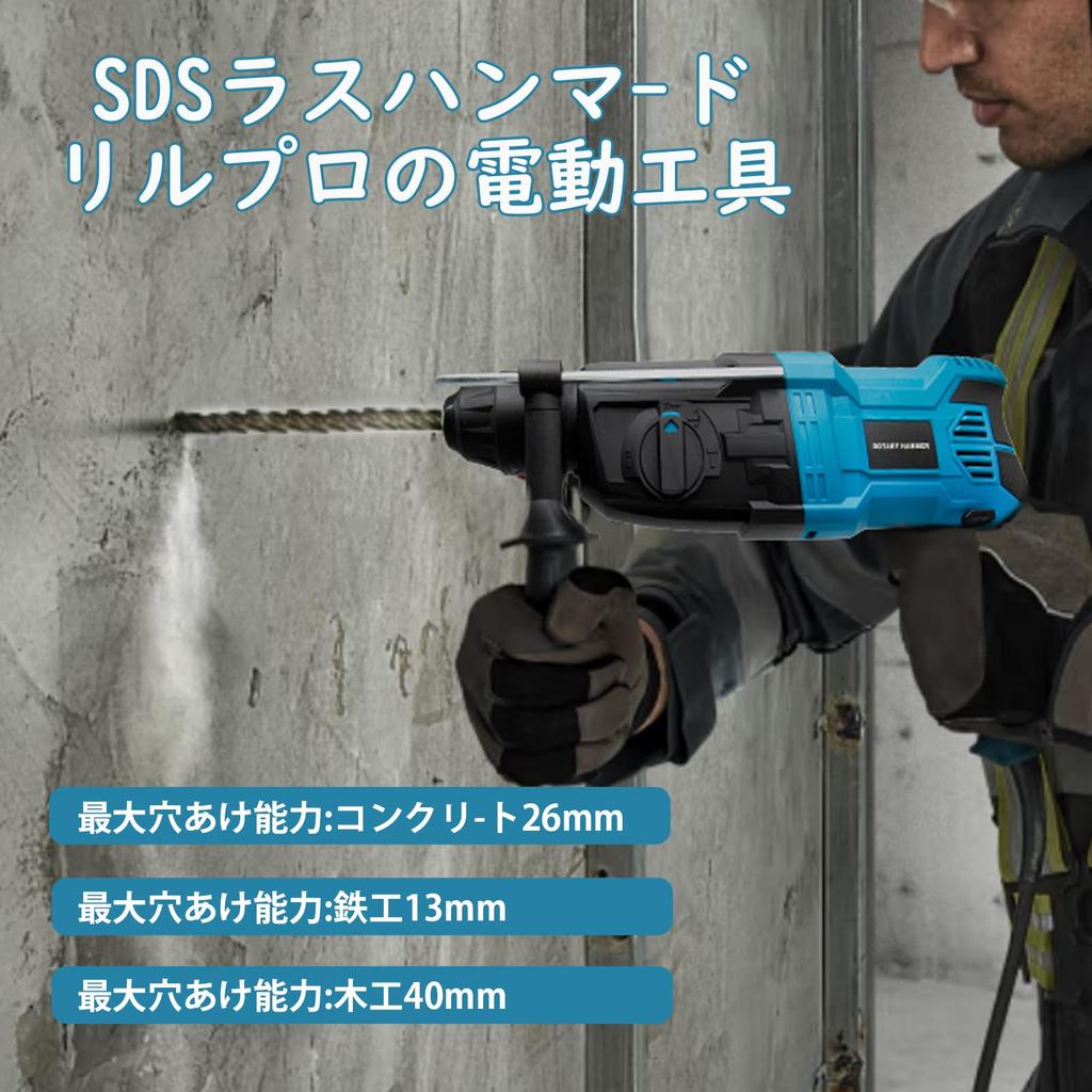 [Удобный для переноски, долговечный и роскошный набор] Мы подарили вам портативный чемодан. Общий вес составляет всего 4,91 кг, что позволяет легко носить его с собой куда угодно.. Внутри коробки находится основной корпус *1, круглое сверло *1, зубило *1, твердосплавное сверло *3, патрон для сверла 0-13 мм *1, рукоятка для прицела *1, угольная щетка *2, строительные перчатки *2.