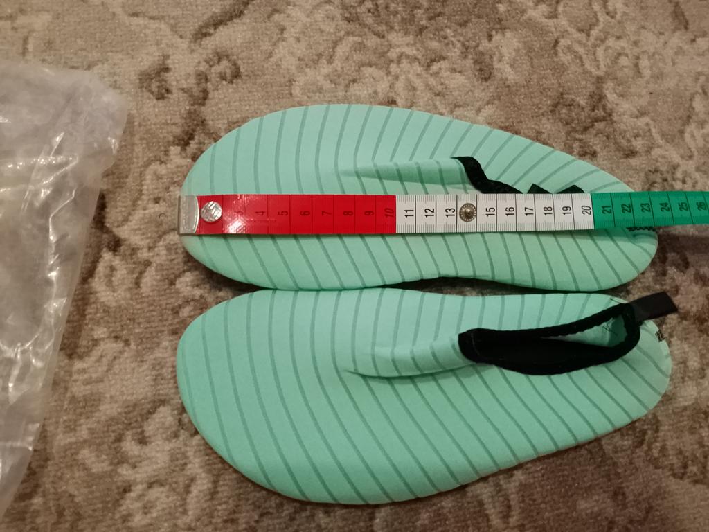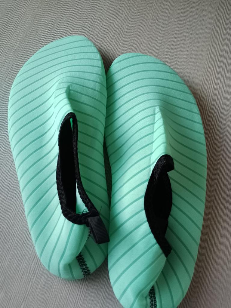 👋🥿👋 Тапки/носки для пляжа. Качество пошива приличное 👍. Подошва - резина - для галечного пляжа - отлично👌. Вот, с цветом - меня "прокинули"... 🥺. Хотела именно "голубые"🩵, как на промофото! Оказались по факту - "мятно/зелёного"❎" цвета ... В другом магазине пришлось перезаказывать...