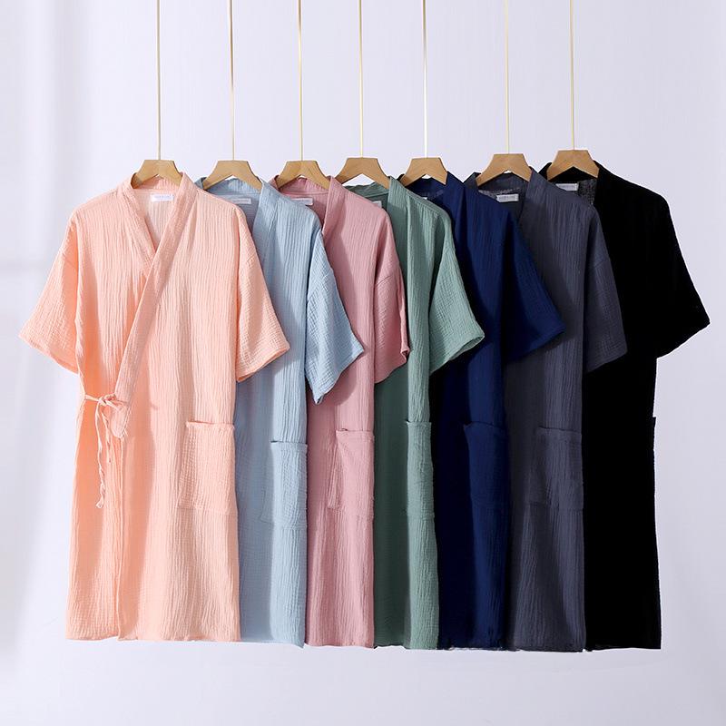 Летний унисекс-халаты из марлевого крепа с короткими рукавами и ночная рубашка - удобная одежда для дома и улицы