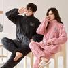 Парный комплект пижамы из кораллового флиса с рисунком - мужская и женская фланель на молнии для осени/зимы