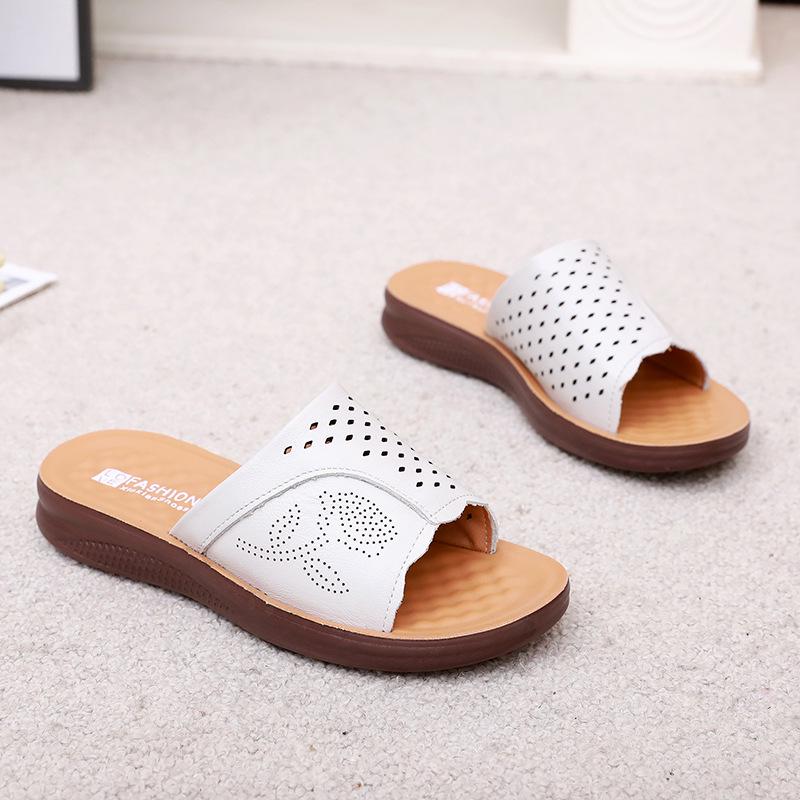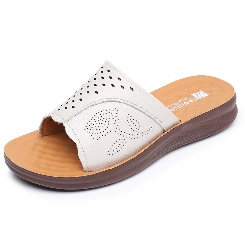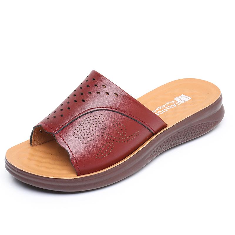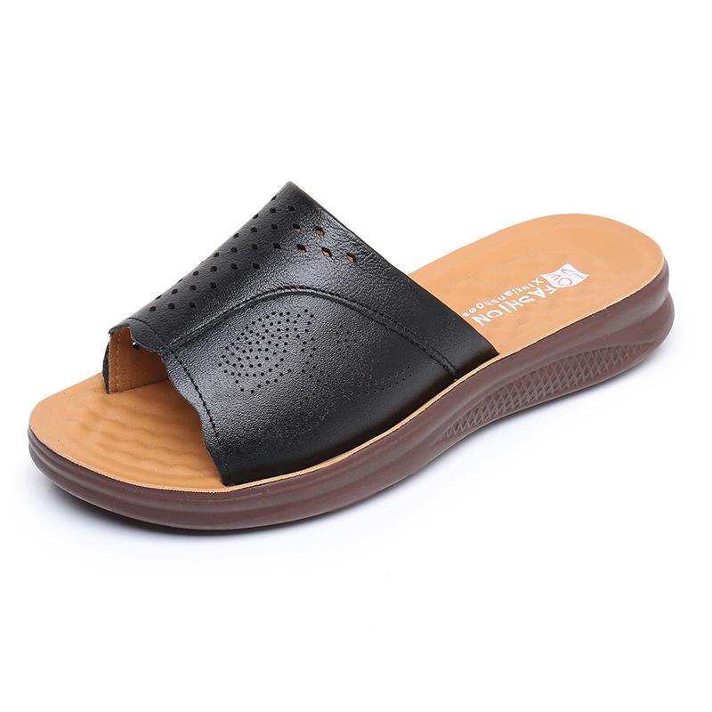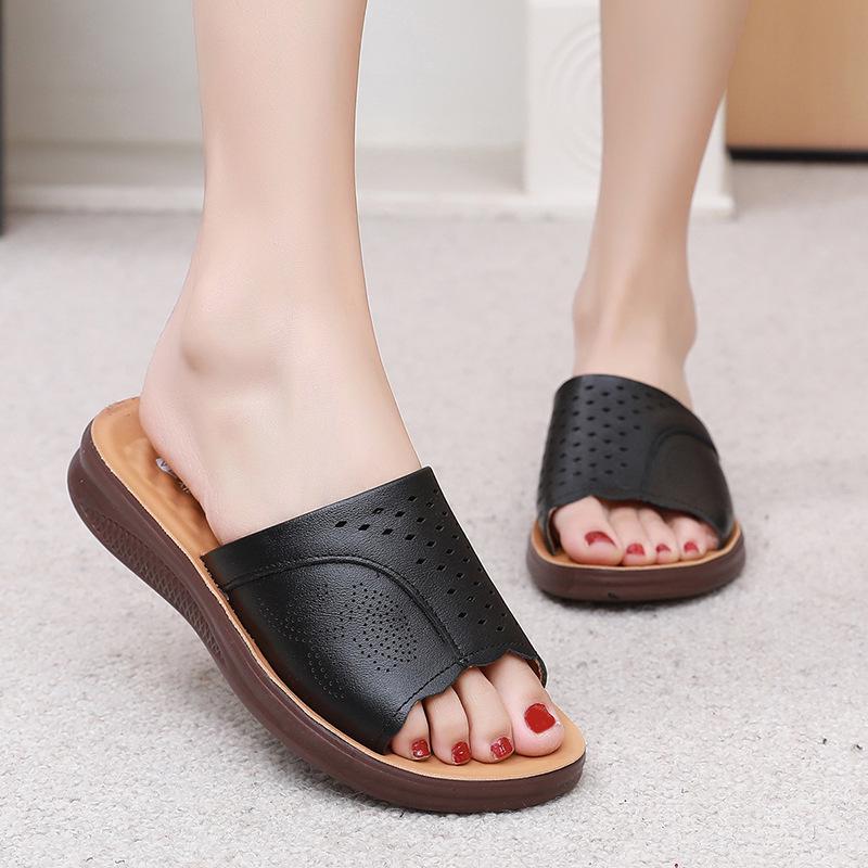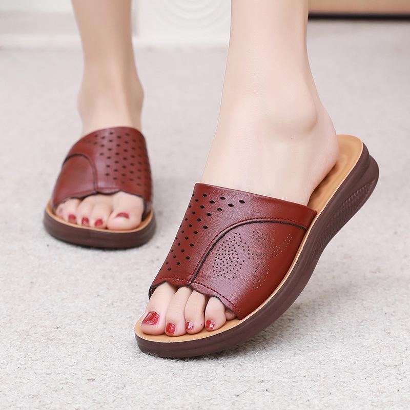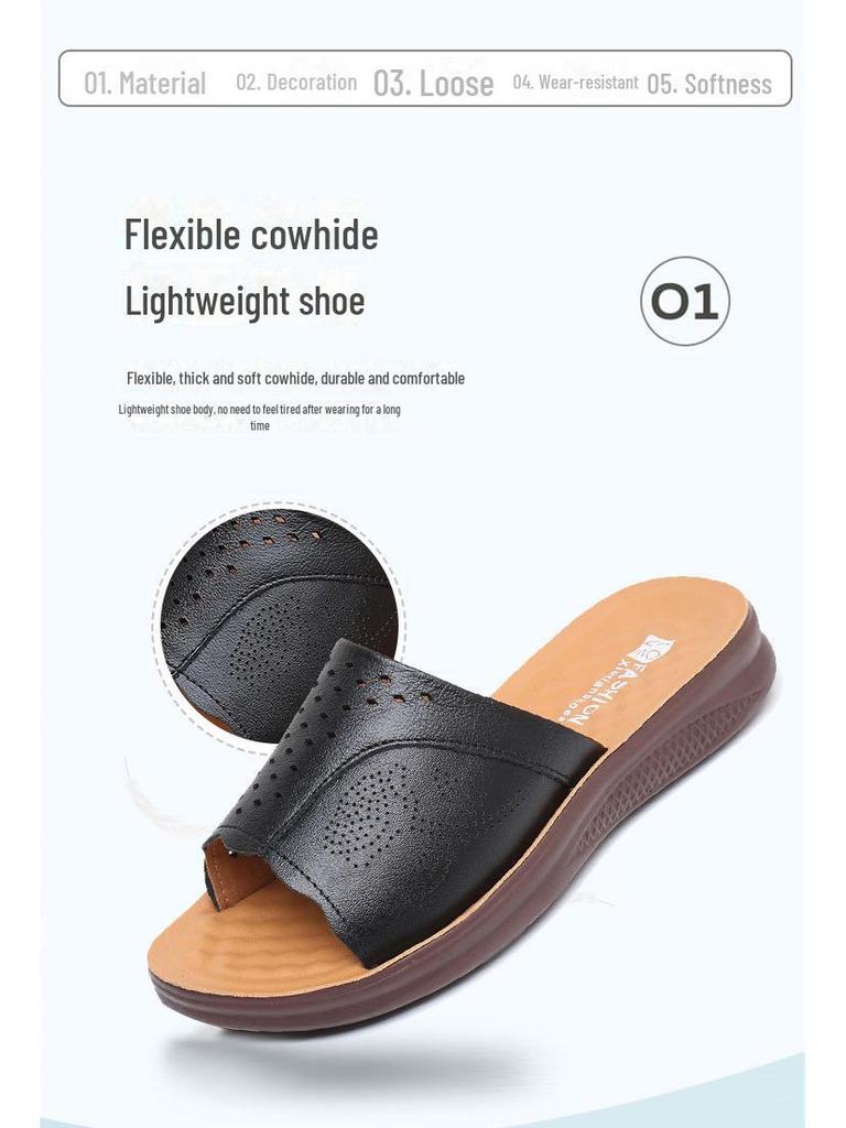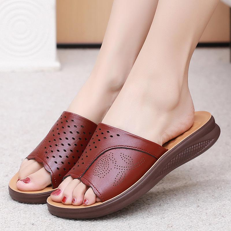 Тапочки из натуральной кожи с мягкой подошвой для женщин среднего и пожилого возраста - удобные, дышащие сандалии