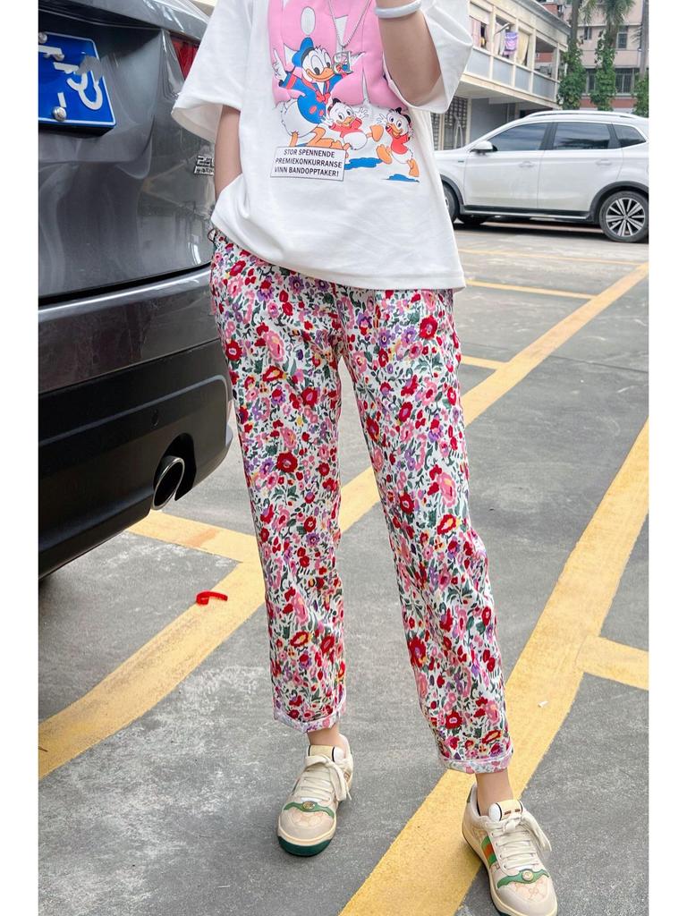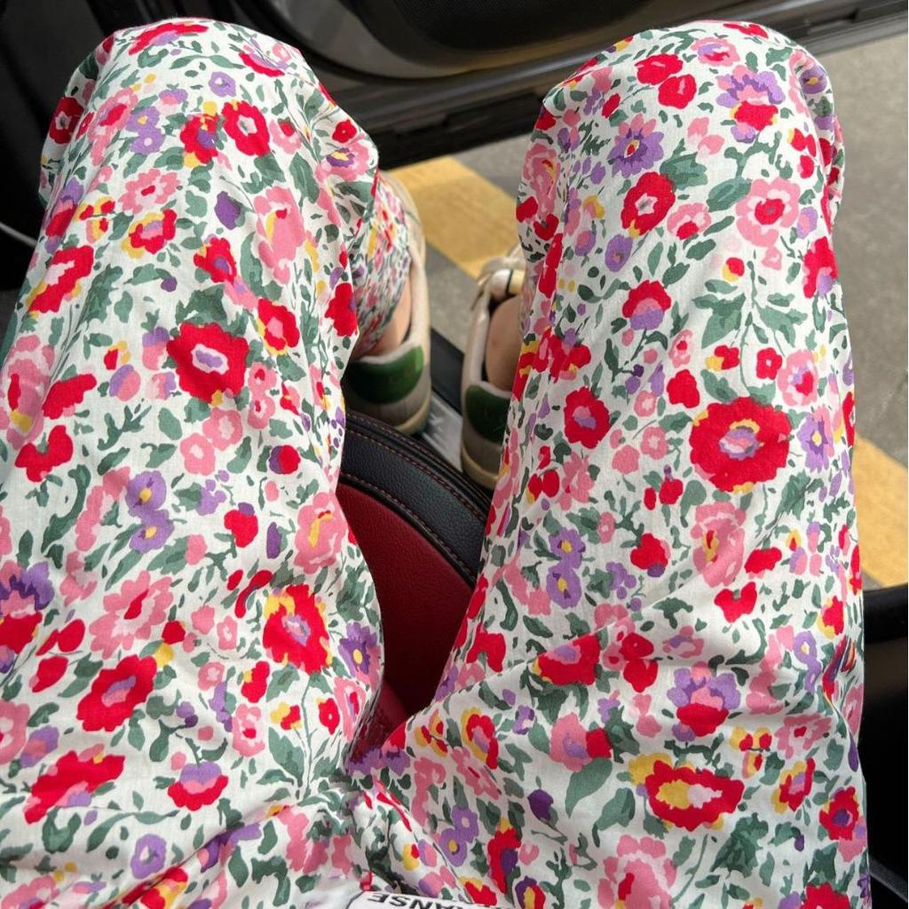 Женские пижамные штаны с цветочным принтом в европейском и американском стиле — свободные, повседневные, подходят для весны и осени, можно носить на открытом воздухе