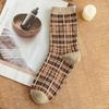 Женские носки средней длины с ретро-ромбовидным узором — осенне-зимняя коричневая серия, модный японский стиль, хлопковая смесь, цветочный дизайн.