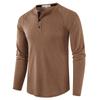 Мужская однотонная вафельная рубашка хенли в европейском и американском стиле с длинным рукавом, застегивающаяся на пуговицы футболка с круглым вырезом
