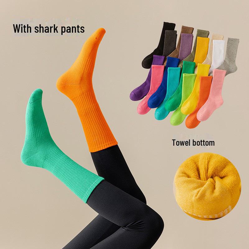 Разноцветные женские носки для йоги и танцев: Толстое полотенце с нижней средней трубкой для спорта и фитнеса. Идеально сочетается с брюками Shark. Модно и удобно!