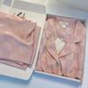 Весна Осень Новинка Ледяной Шелковый Пижамы Женский Кардиган с Застежкой-Ломтиком Женский Комплект Из Двух Частей Элегантная Фиолетовая Женская Пижама