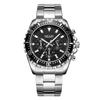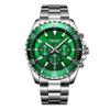 Мужские кварцевые часы с хронографом из нержавеющей стали, водонепроницаемые, светящиеся аналоговые 24-часовые наручные часы для мужчин, зеленый циферблат