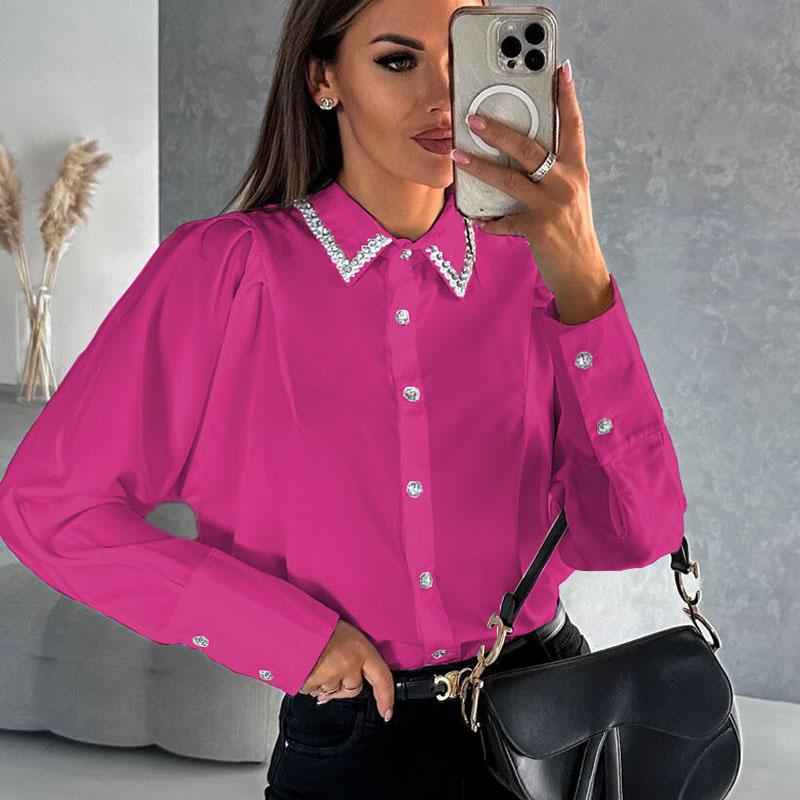 Женская рубашка-топ со стразами и длинными рукавами, весна-лето
