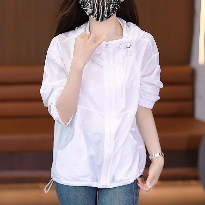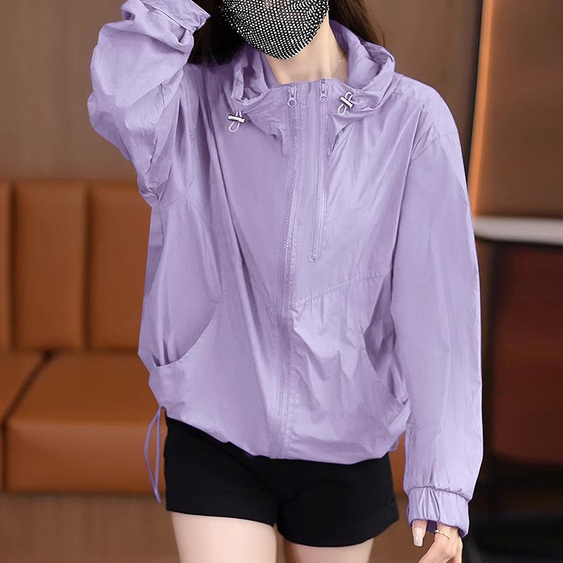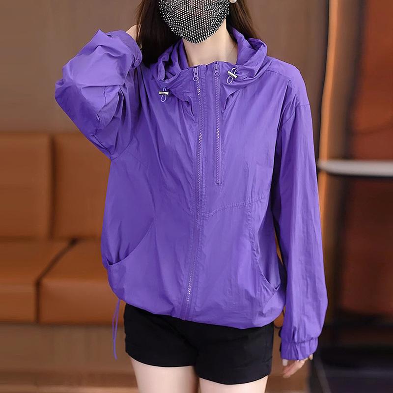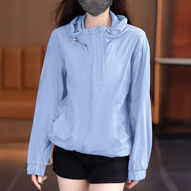 Женская летняя куртка с капюшоном, легкая короткая однотонная солнцезащитная куртка