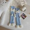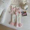 «Женские носки с бантиками в стиле Лолиты и меховыми шариками — контрастная строчка розового и белого цвета, теплые осенне-зимние накидки на ноги»