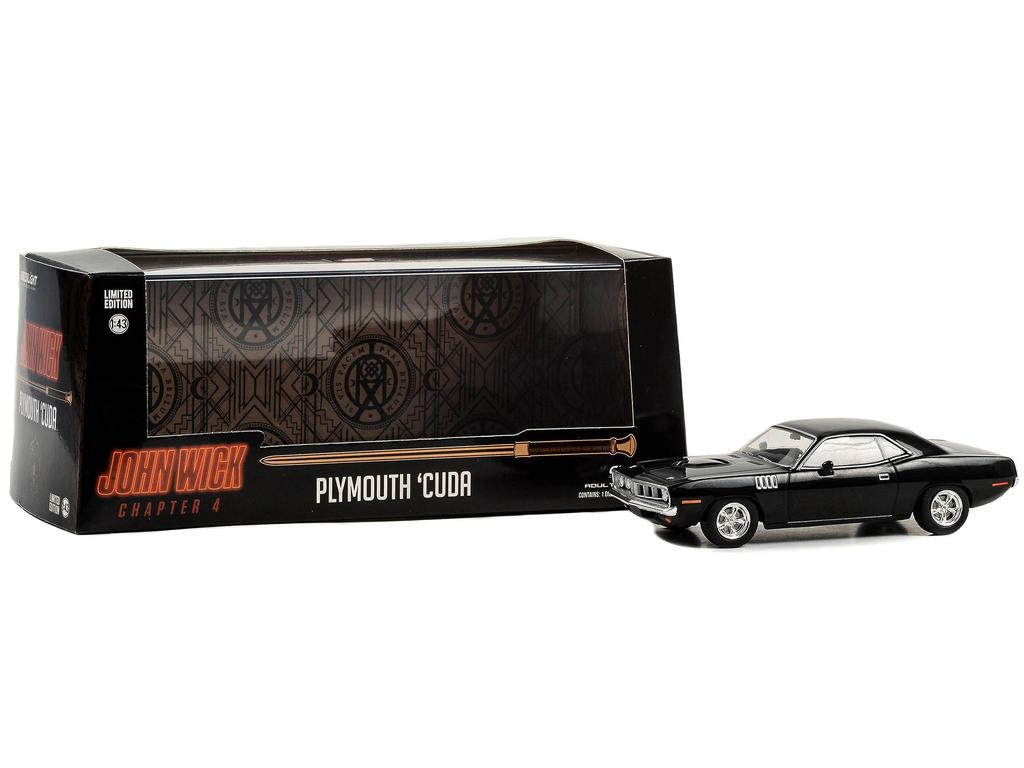 1971 Plymouth Barracuda Black John Wick Глава 4 Фильм Голливудская серия Литая модель автомобиля Greenlight 86641 (2023) 1/43
