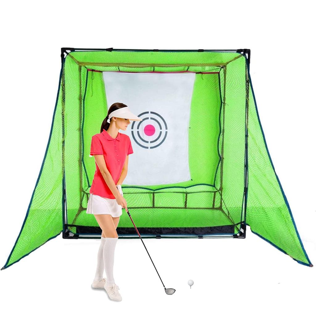 [Характеристики продукта] Открытый размер: 2 x 1 x 2 м Размеры склада: 101 x 20 x 17 см Вес: 11,7 кг Цвет: Зеленый материал: Нейлон и полиэтилен. Сетка для гольфа имеет конструкцию «двойной сетки», что делает сетку, защищающую от попадания мячей, более прочной и способной выдерживать сильные удары, например, удары водителя.. Мишень для тренировочного поля для гольфа изготовлена из мягкого бархатного материала, который снижает шум, возникающий из-за трения.. Он долговечен и может защитить заднюю сетку и продлить срок службы вашей тренировочной сетки.. Тяжелая и прочная железная труба обеспечивает устойчивость и безопасность во время занятий.