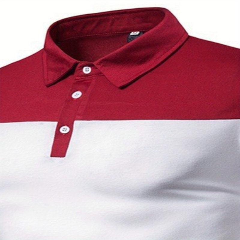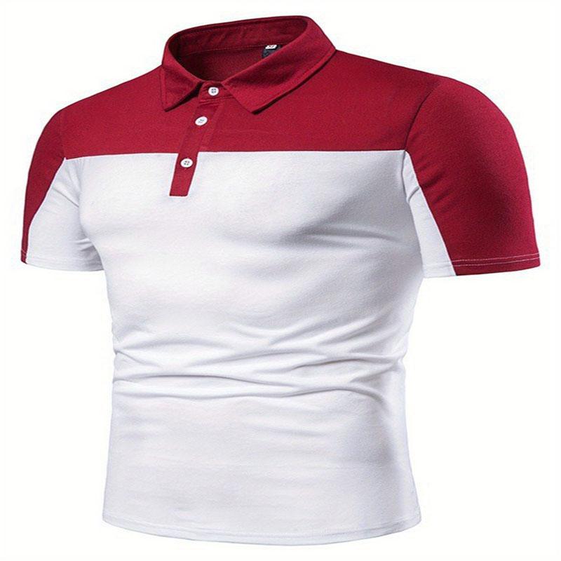 Мужская летняя повседневная рубашка с модным двухцветным контрастным дизайном и удобной рубашкой-поло с короткими рукавами для ношения на открытом воздухе