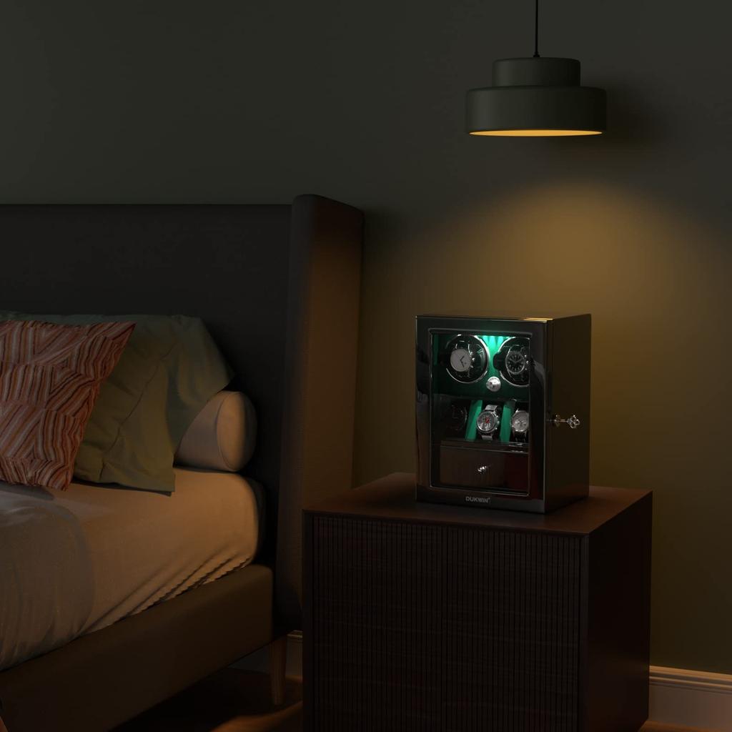 [Усовершенствованная машинка для подзавода часов] Автоматическая машинка для подзавода часов DUKWIN изготовлена из высококачественных материалов и отделана роскошным 5-слойным рояльным покрытием.. Отличающийся продуманным дизайном и первоклассным производственным процессом, он компактен, стильный и имеет практичные функции.. Расположенный вертикально, а не под углом 45 градусов, он экономит пространство и выглядит изысканно, что делает его идеальным для таких интерьеров, как офисы и спальни.