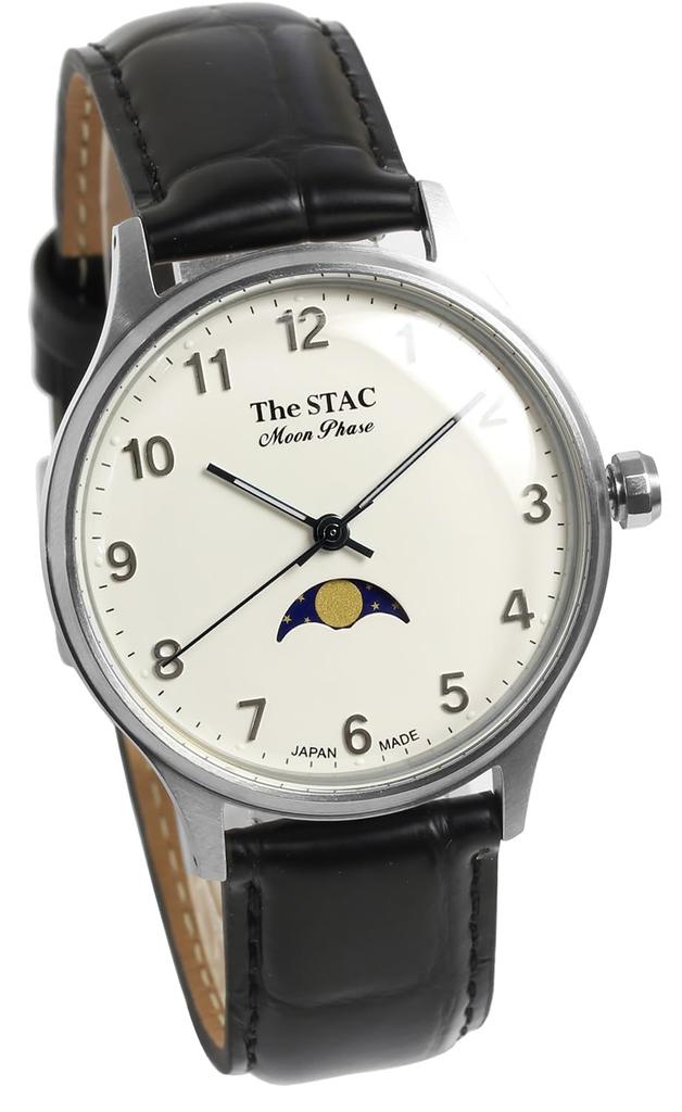The STAC Сделано в Японии Часы 36мм Антикварные Ретро Унисекс Фаза Луны Арабские x Белые Черные Кроко [The Stack] Мужские Женские ST-MF001
