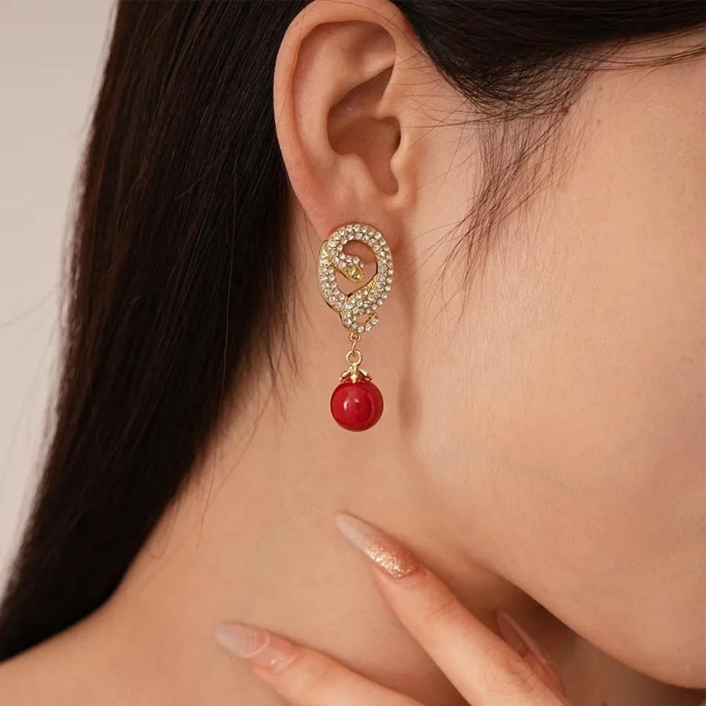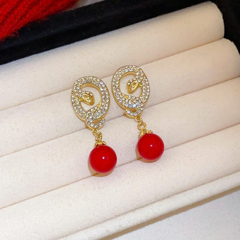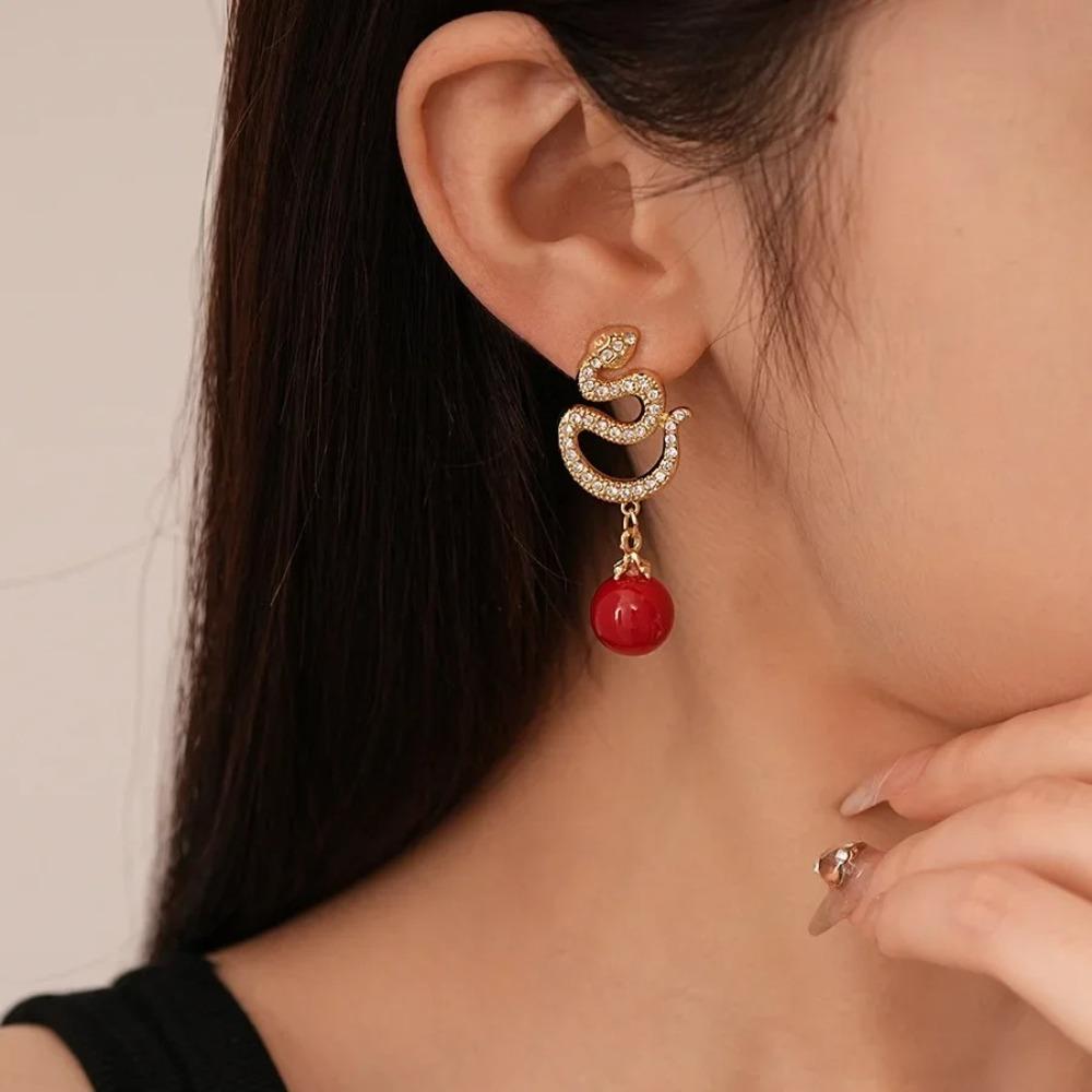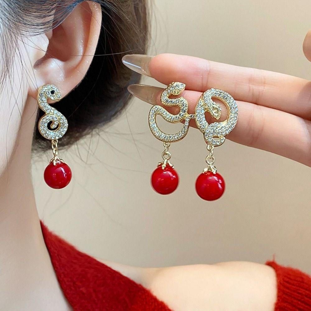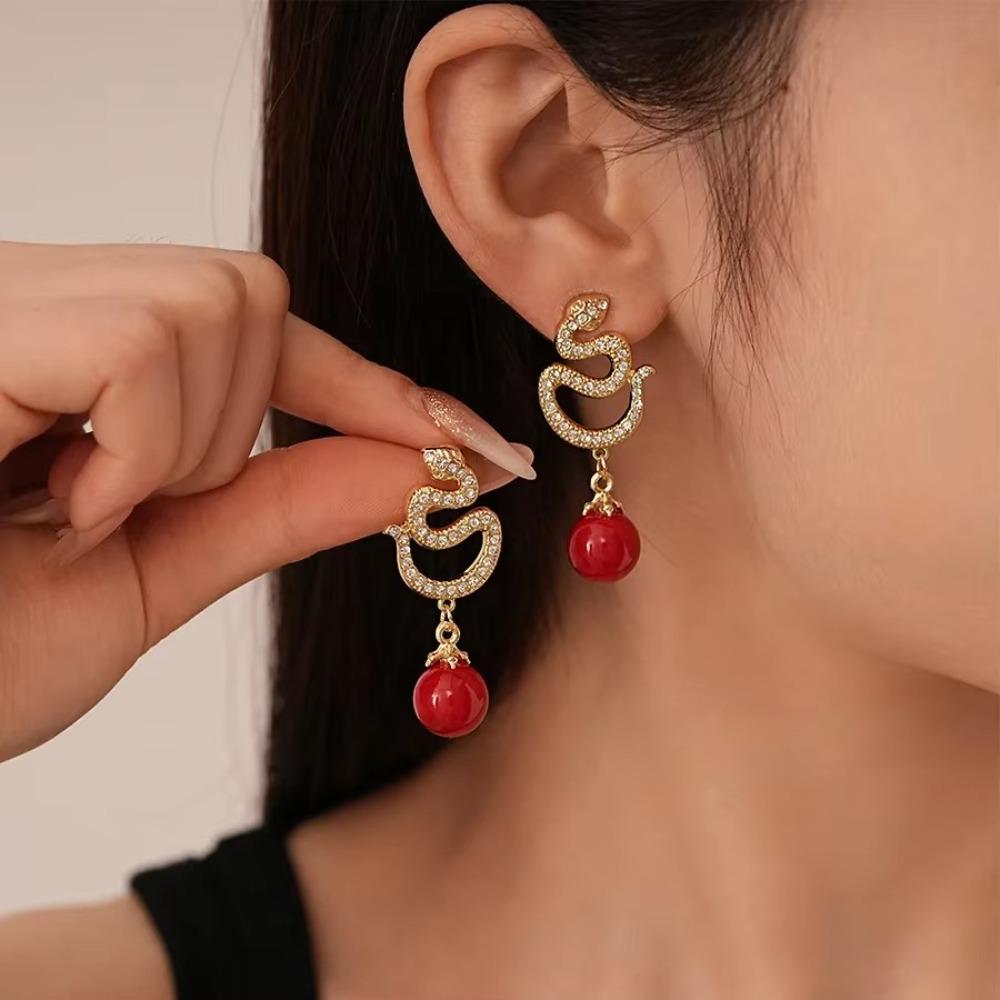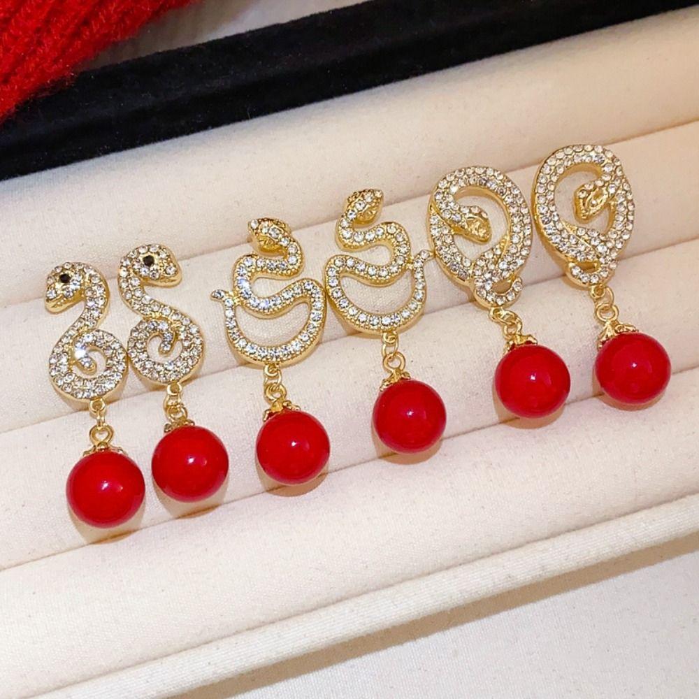 Новогодние серьги-подвески из бусин в виде змеи, серьги со знаком зодиака, серьги с подвесками в виде змеи, женские