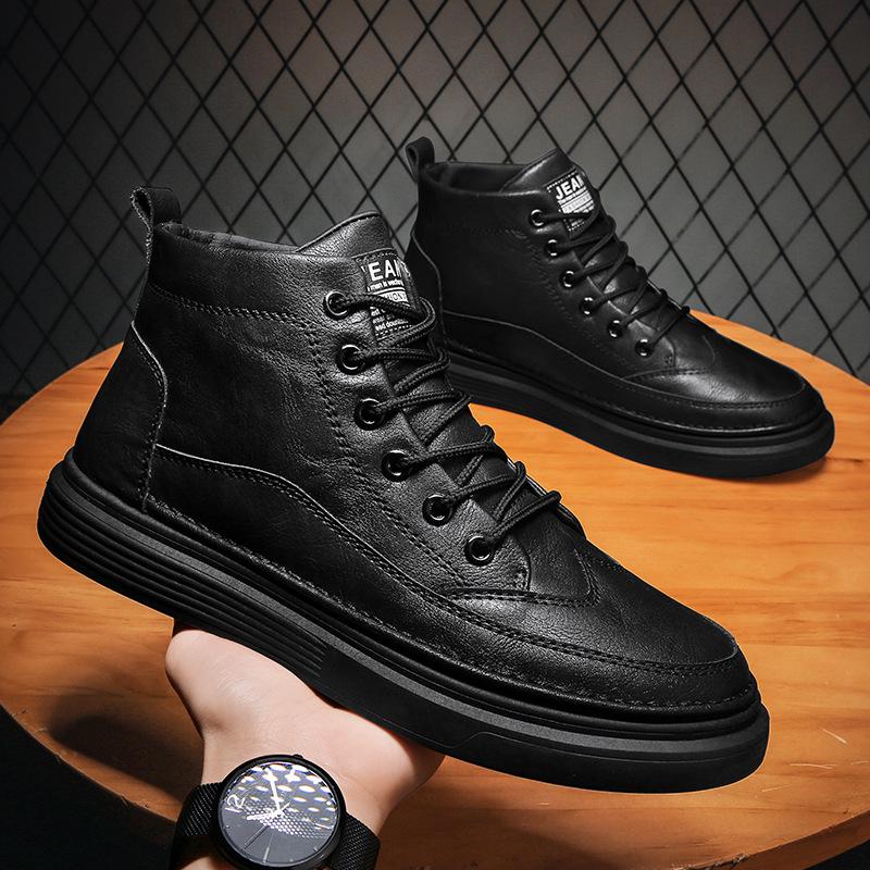 Весна 2025 г. Мужские повседневные кожаные туфли с высоким берцем в британском стиле — модные деловые туфли черного цвета на толстой подошве — купить товар онлайн с бесплатной доставкой по всему миру!