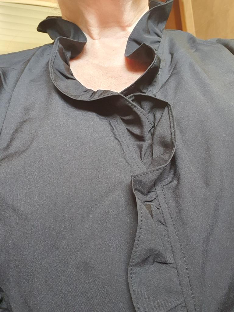 Ткань мягкая, тонкая, приятная к телу, не просвечивает, мнущаяся. Размер соответствует. Но в деле это абсолютно другая модель: воланы ооочень слабо присборены, торчат произвольно и неаккуратно куда придётся, как их не укладывай, швы подгиба воланов смотрятся грубо. Хотя на модели - воланы вьются красивыми волнами строго вовнутрь выреза. Разочарована. Носить не буду даже дома. На выкид.
