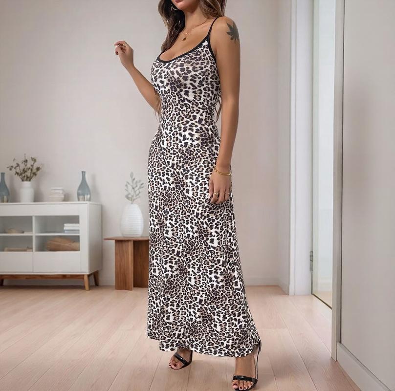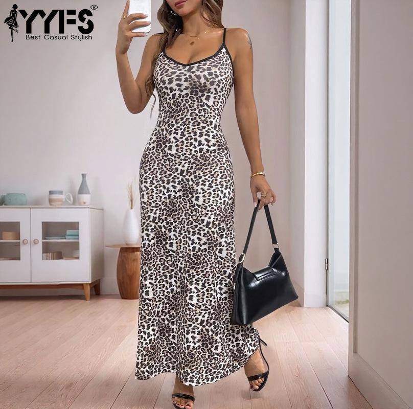 YYFS Женская мода лето весна леопардовый принт без рукавов повседневные платья с высокой талией