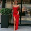 2025 весна лето женское эластичное длинное платье с разрезом y2k модное однотонное облегающее платье без рукавов тонкое прямое сексуальное черное красное вечернее платье на бретелях