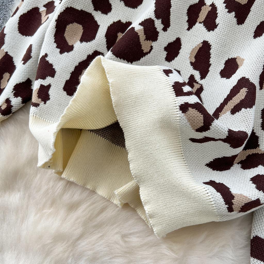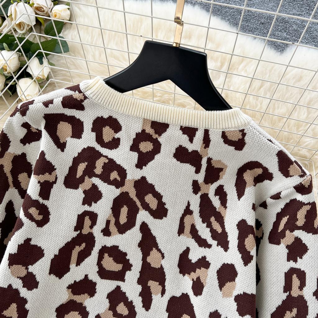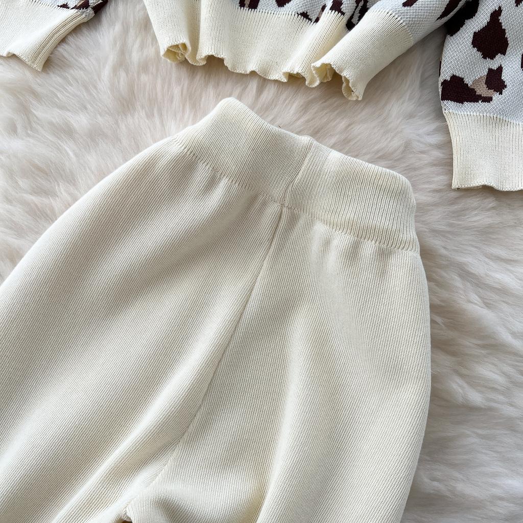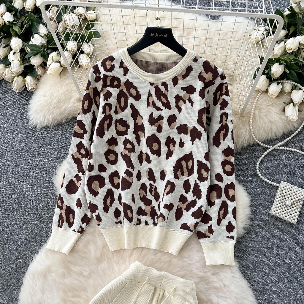 Осенне-зимний женский трикотажный свитер с принтом, брюки, комплект из двух предметов, женский свитер с круглым вырезом и спортивный костюм с брюками длиной до щиколотки