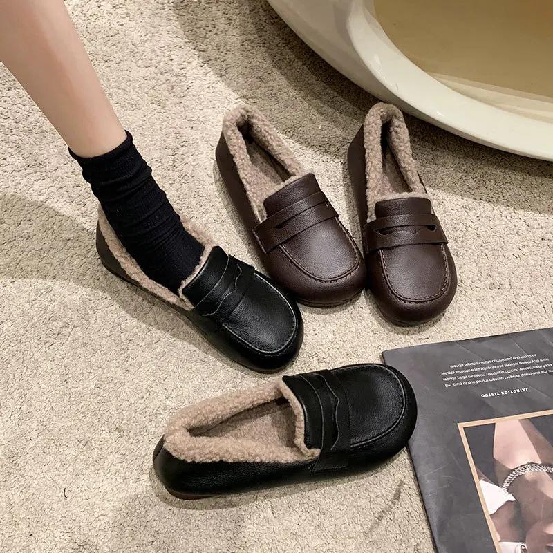 Новая зимняя обувь 2024 года из бархата, теплая, мягкая, кожаная, хлопковая, женская, модная, маленькая, кожаная, женская, zapatos de mujer