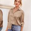 Модные повседневные свободные рубашки с длинным рукавом для женщин, весна и лето, новые офисные женские блузки, топы с пуговицами на лацканах, однотонные простые тонкие женские рубашки 26257