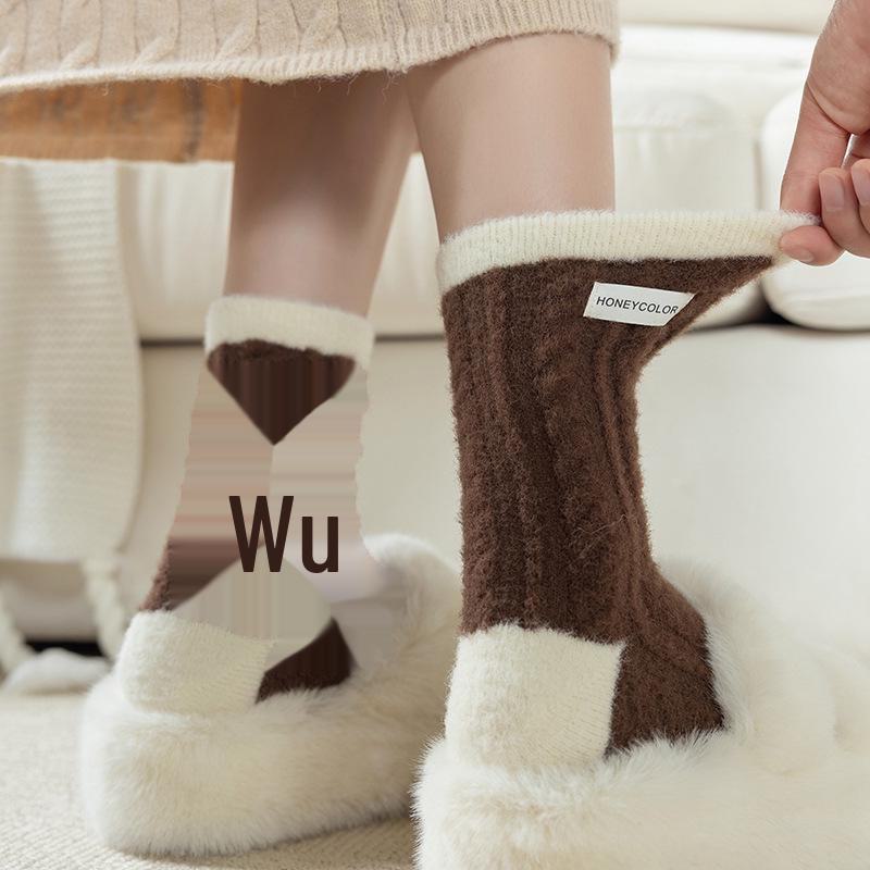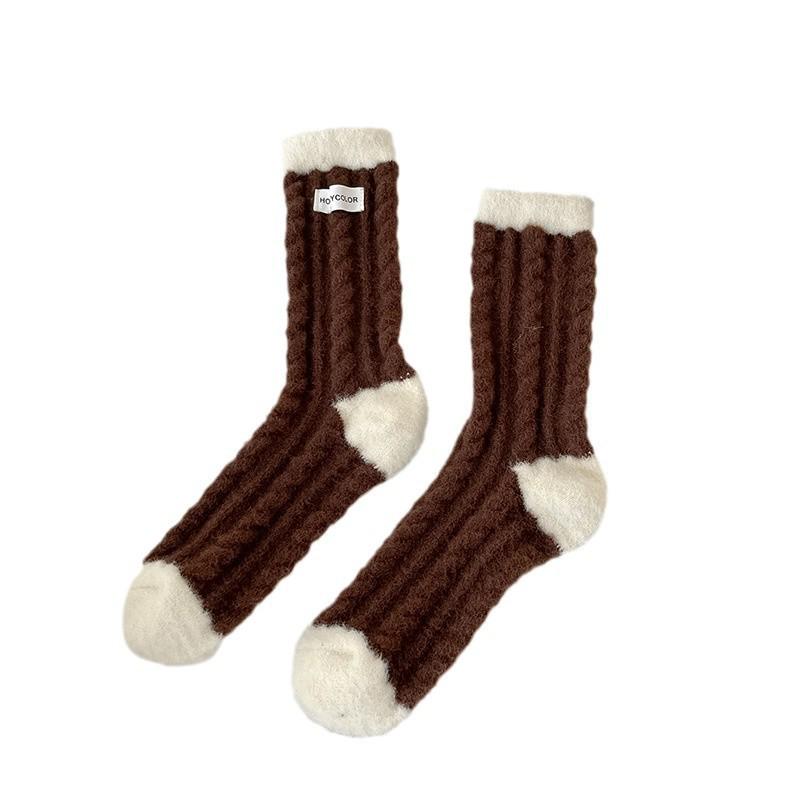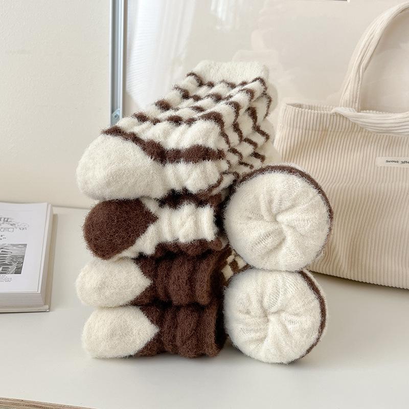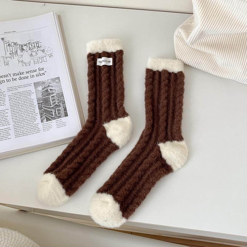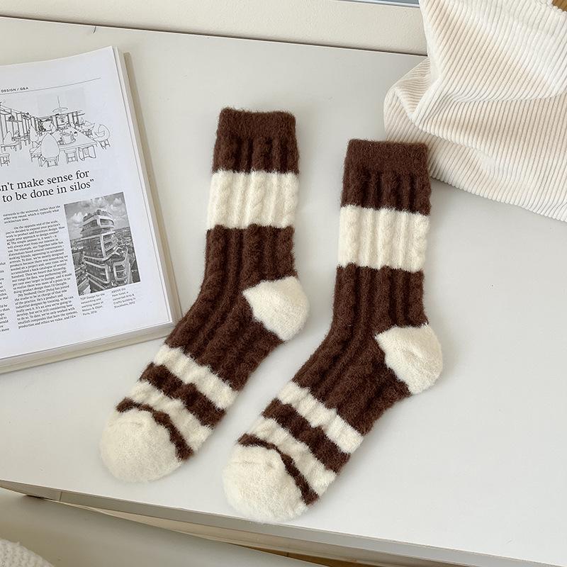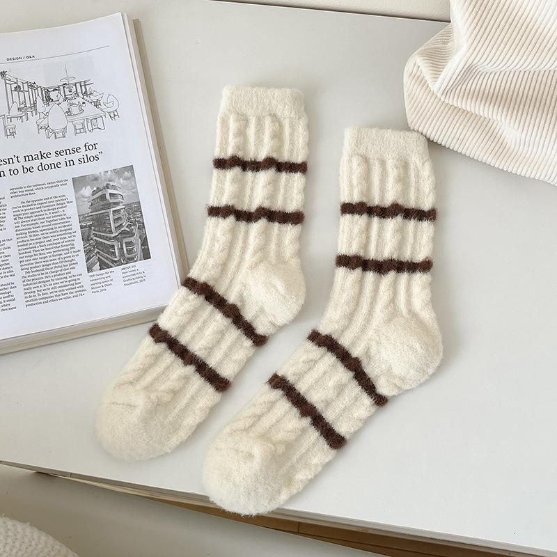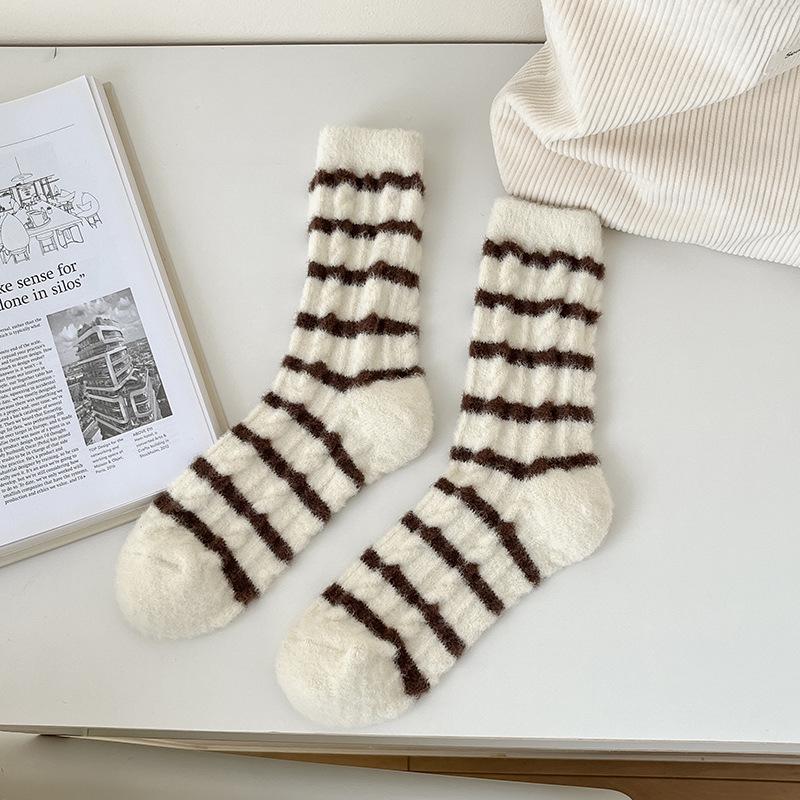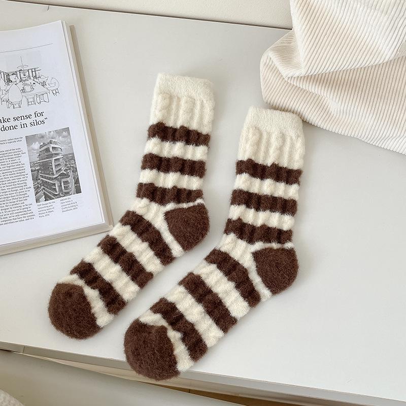 Женские бархатные носки в кофейную полоску — толстые, мягкие, средней длины, для осени/зимы