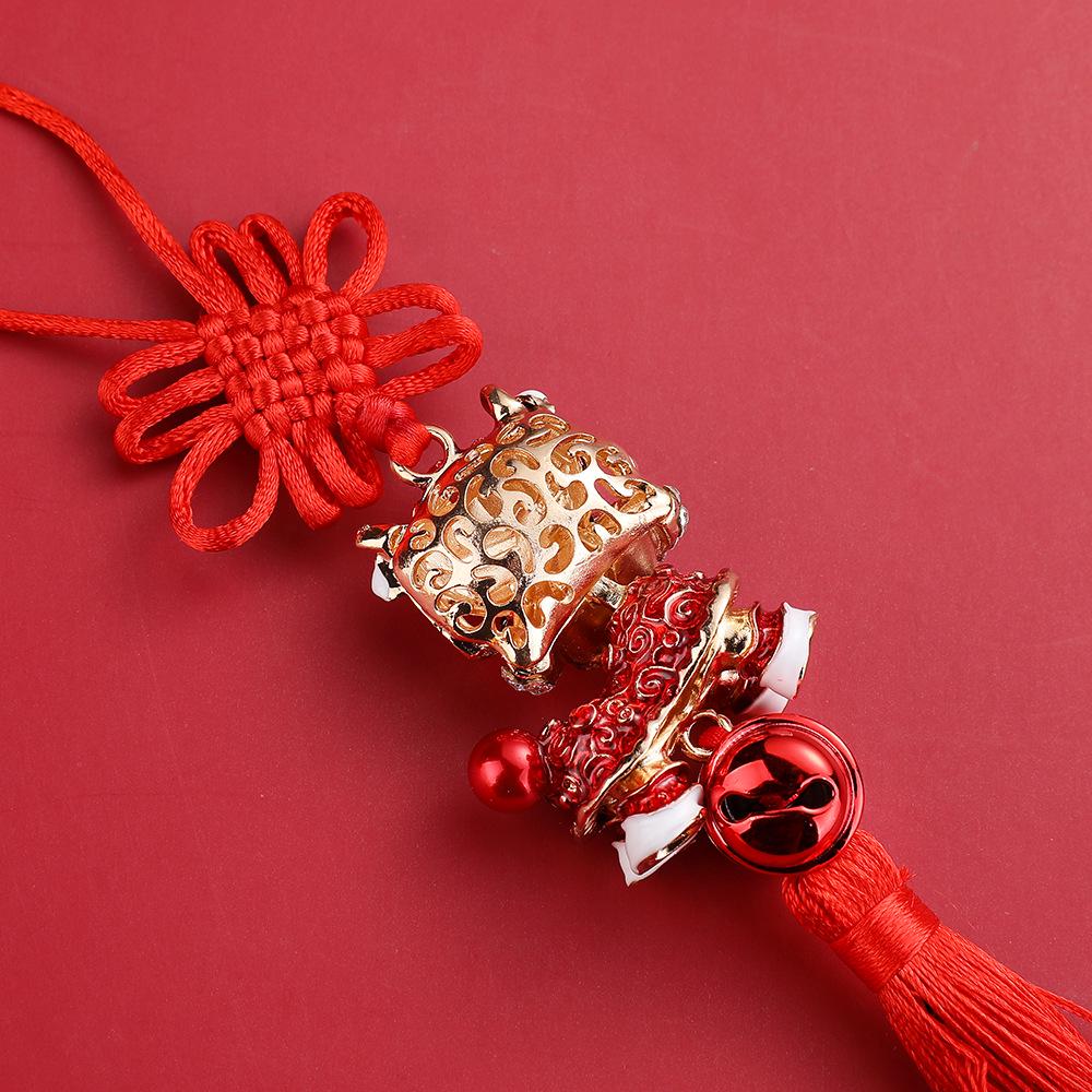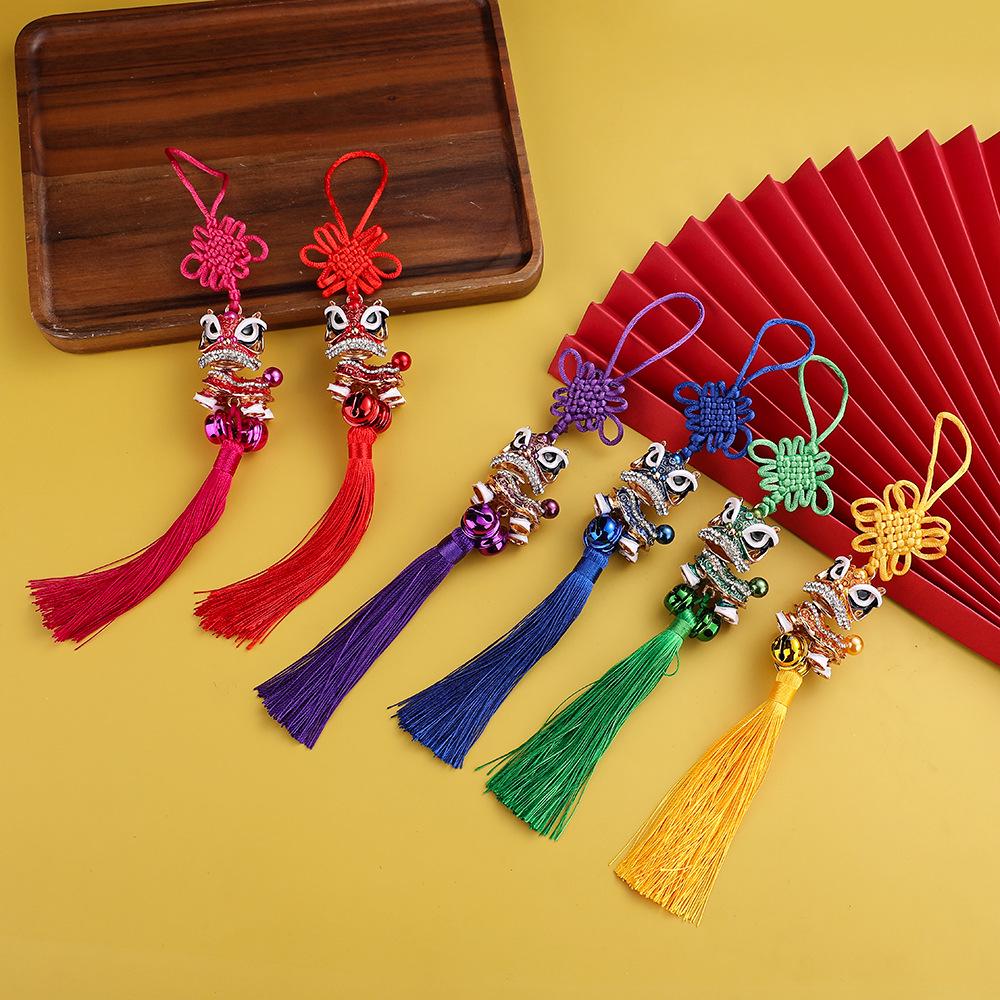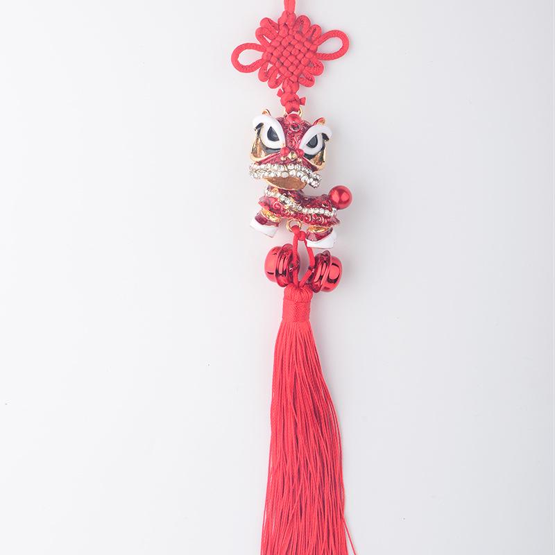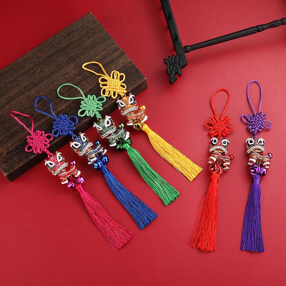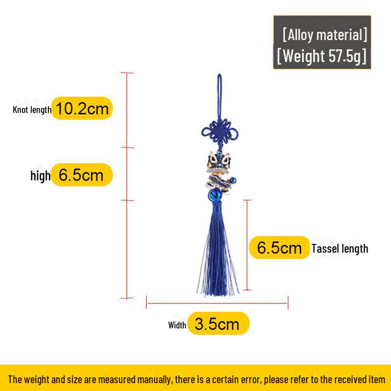 Подвеска для автомобиля «Танец льва»: Зеркало заднего вида с китайским узлом, кисточкой и рисунком в виде маленького льва