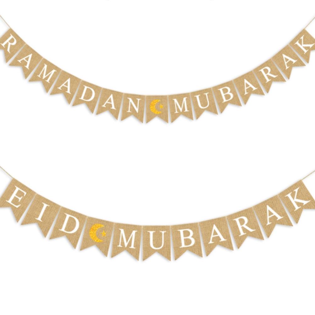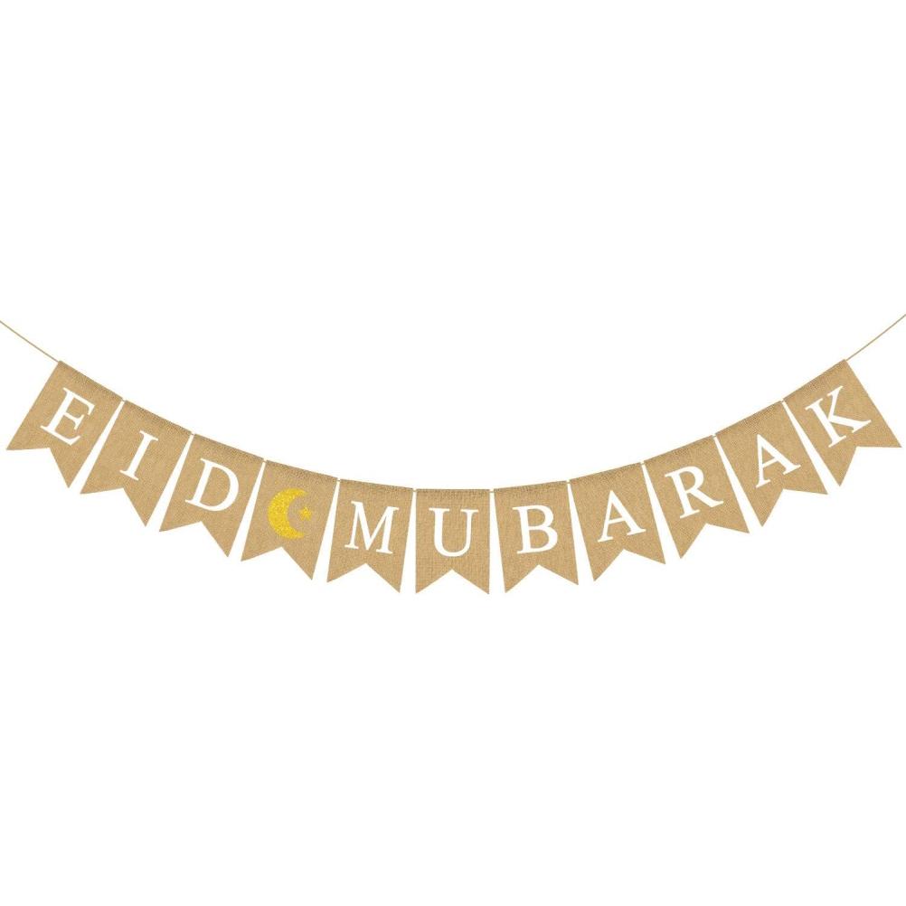 Баннер Ид Мубарак, украшение из мешковины, флаг, празднование Ид, подвесной баннер для окон коридора
