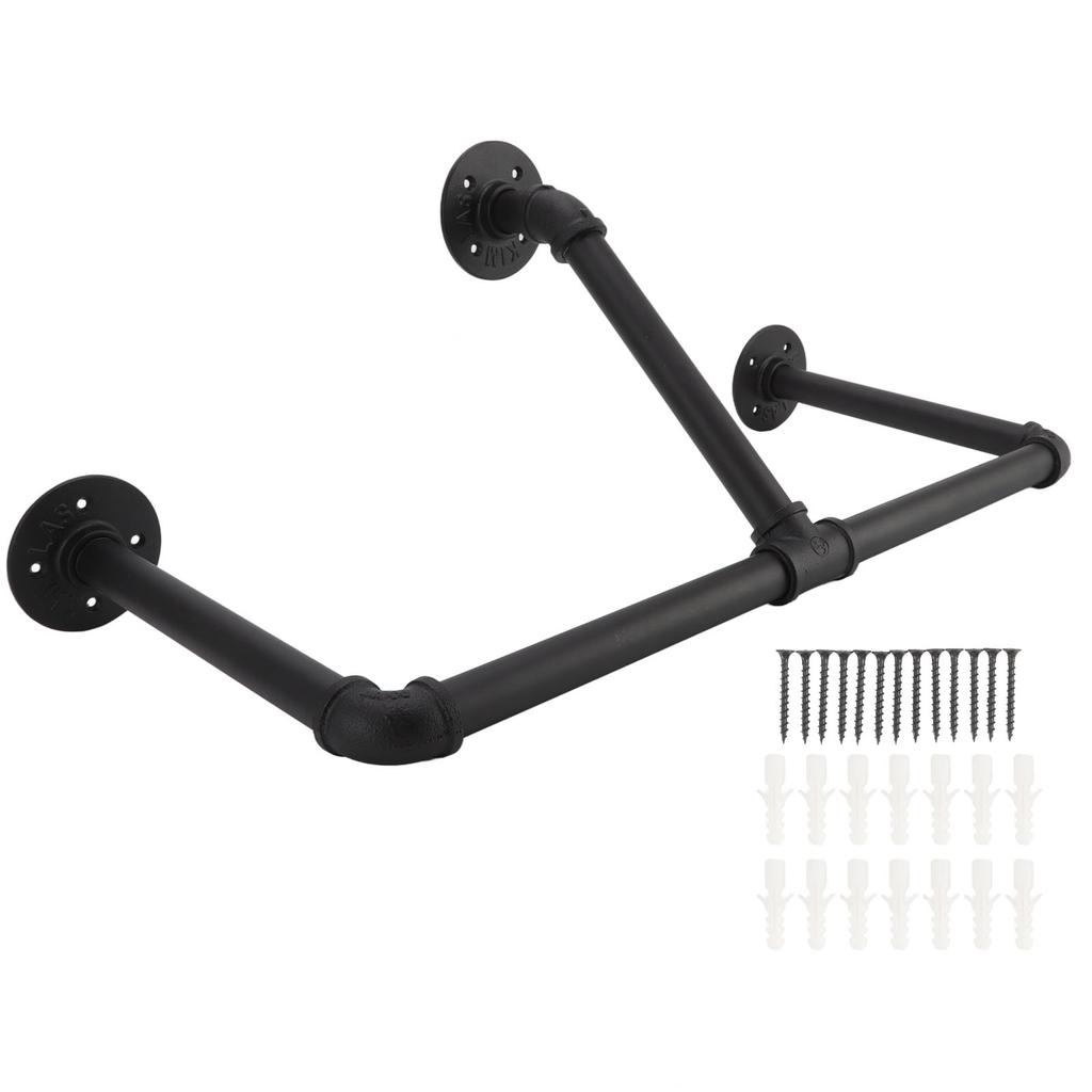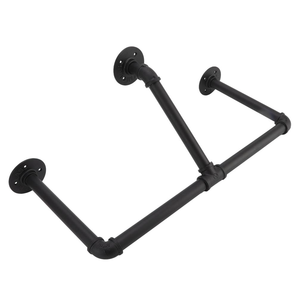 1. Прочный утюг: Промышленная труба настенная вешалка для одежды изготовлена из железного материала, конструкция прочная и долговечная. Устойчив к царапинам, коррозии, пятнам воды и обесцвечиванию.