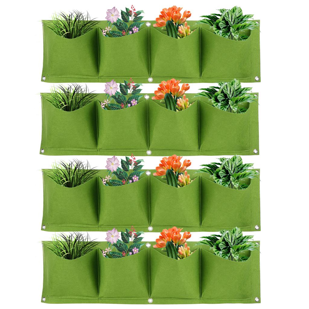 4 шт. 4 кармана для выращивания растений, настенный многоразовый разлагаемый фетровый садовый горшок, зеленый