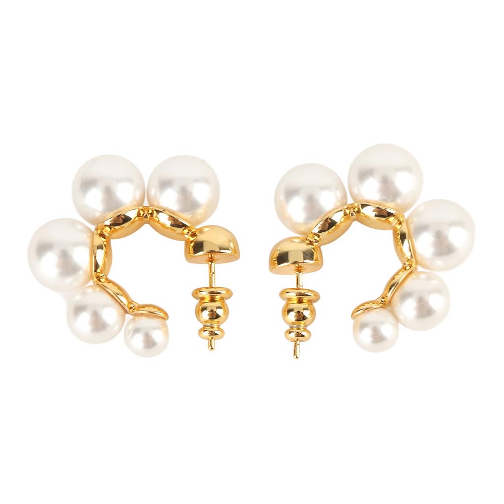 Серьги-кольца с имитацией жемчуга, позолоченные серьги-кольца с имитацией жемчуга, стильные, элегантные, женские