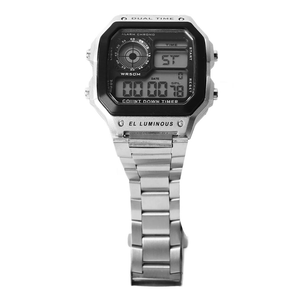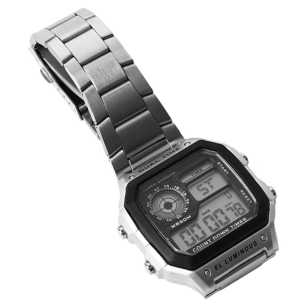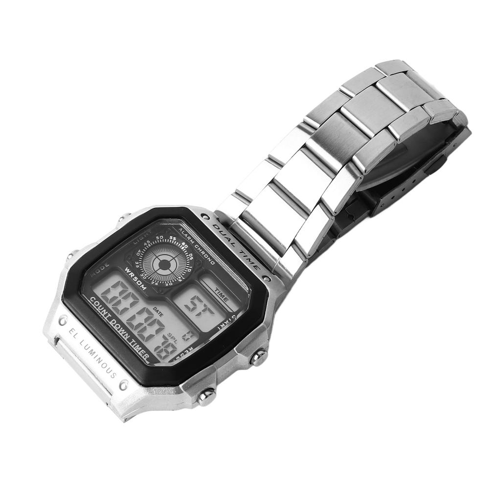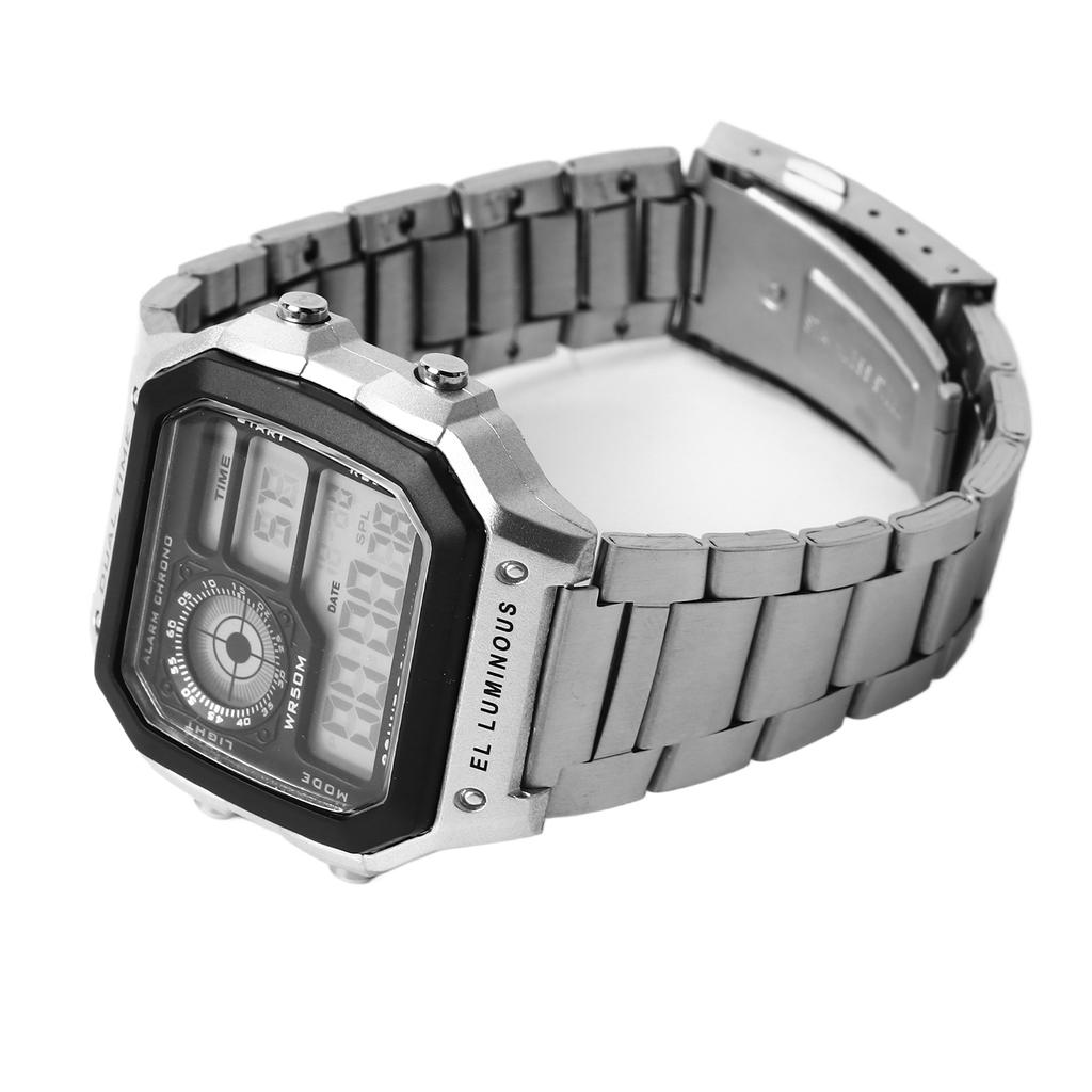 Водонепроницаемые цифровые часы из нержавеющей стали, многофункциональные, винтажные, светящиеся, спортивные часы, серебристые