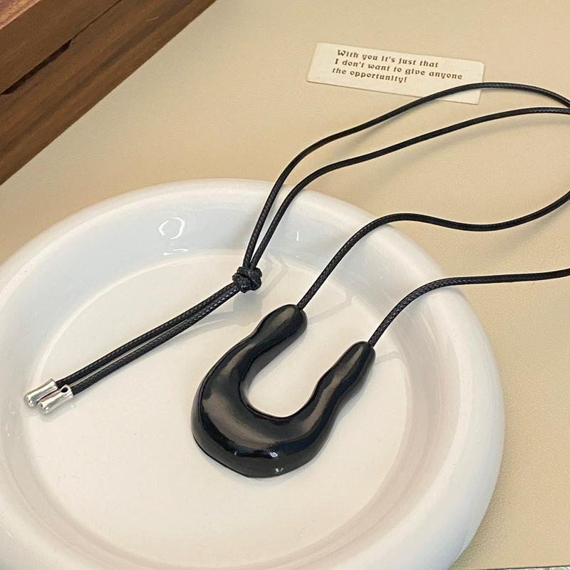 Высококачественное полированное ожерелье с подвеской в форме подковы для женщин в стиле панк, регулируемое, из черной кожи, ювелирные изделия для вечеринок