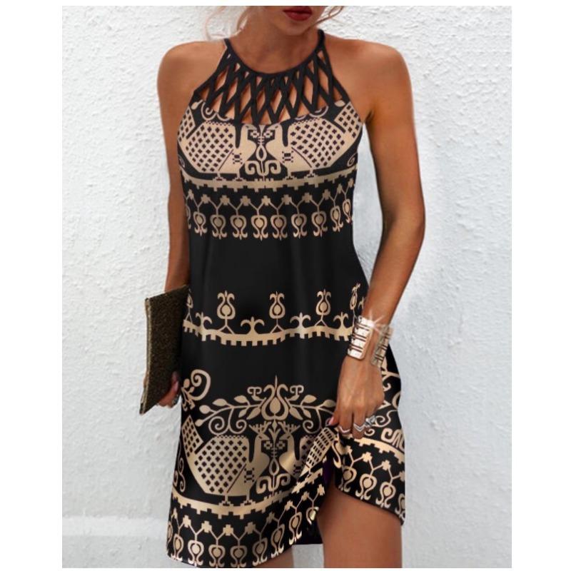 Европейский и американский весенне-летний новый этнический стиль позиционирование принт сетчатый пояс без рукавов повседневное платье женская одежда