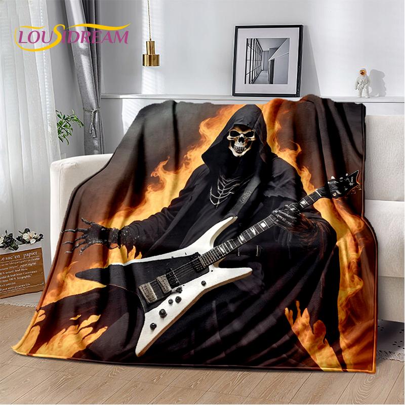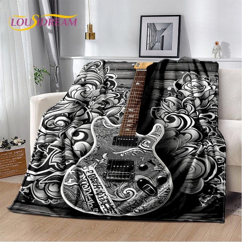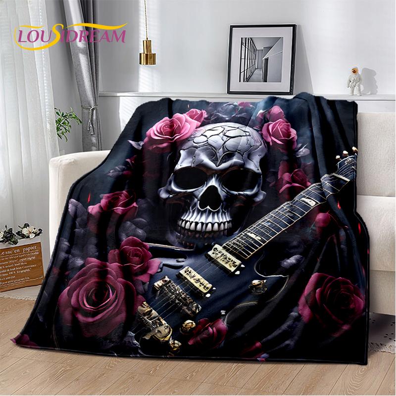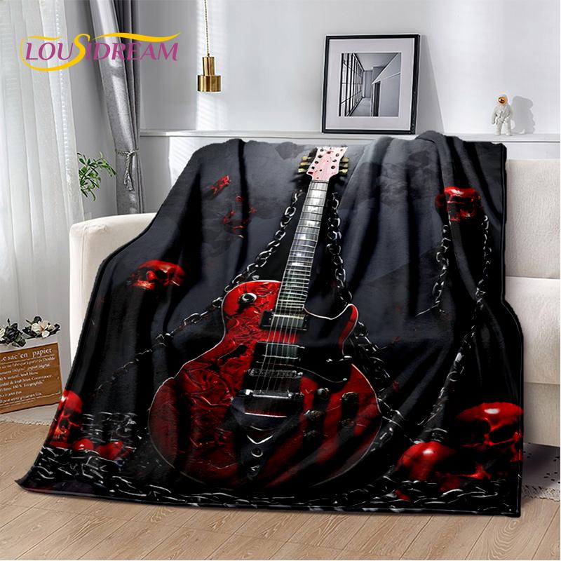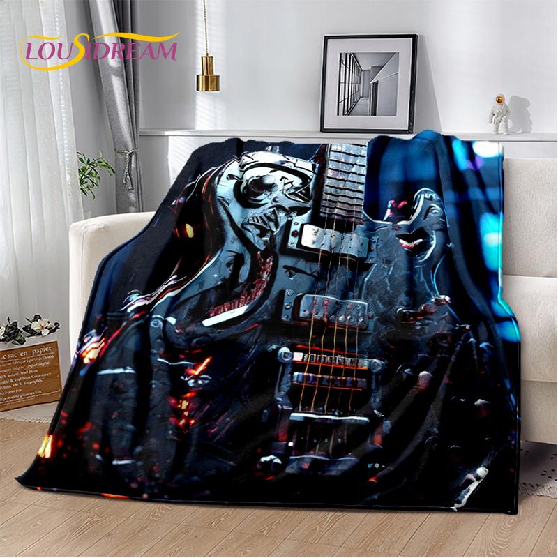 Классический череп электрогитара музыкальные инструменты одеяло, мягкий плед одеяло для дома спальня кровать диван пикник чехол для детей подарок