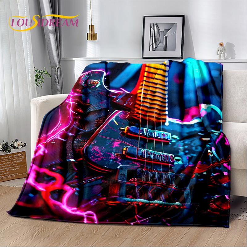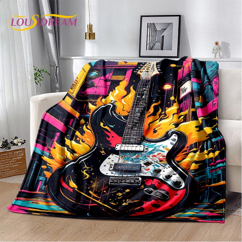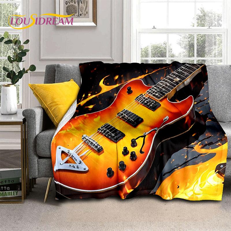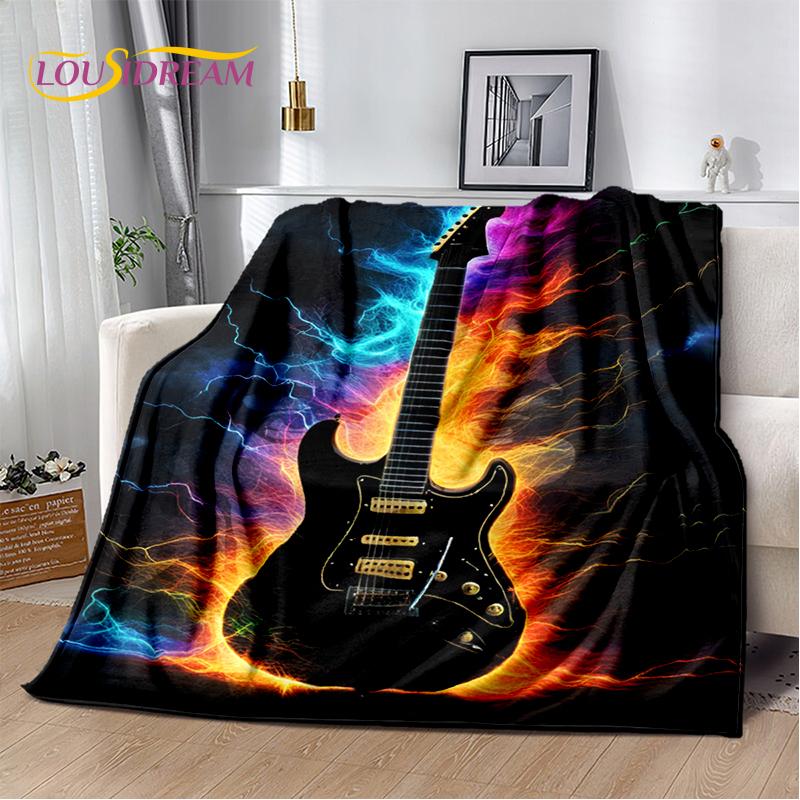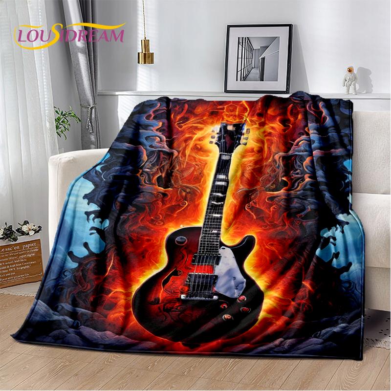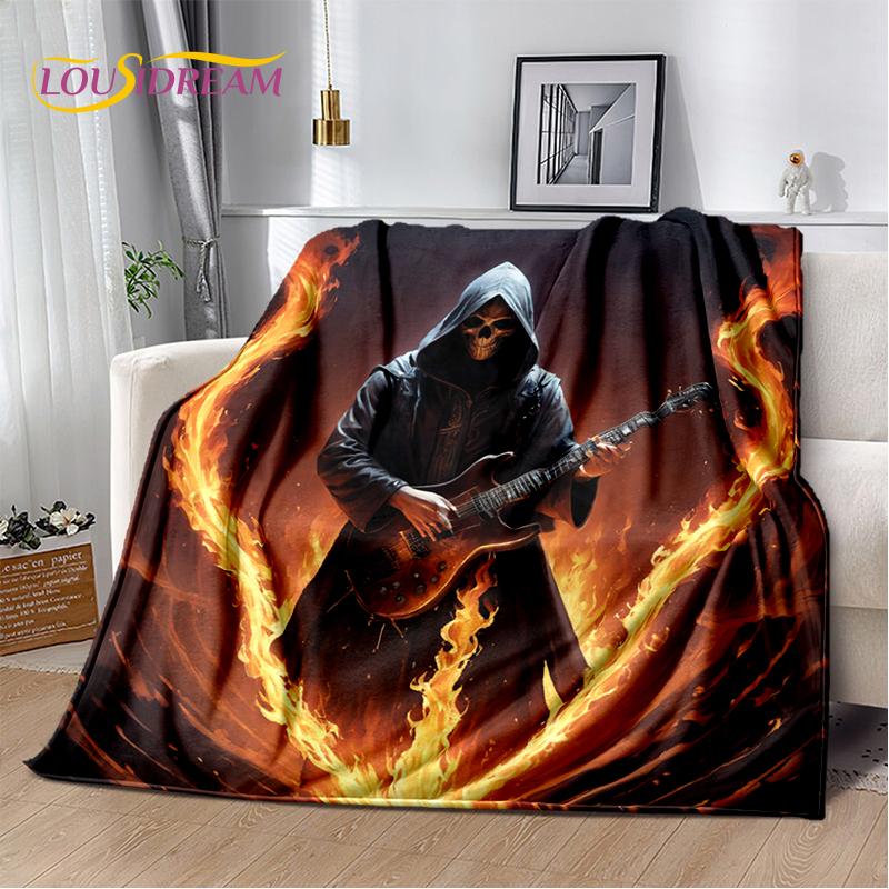 Классический череп электрогитара музыкальные инструменты одеяло, мягкий плед одеяло для дома спальня кровать диван пикник чехол для детей подарок