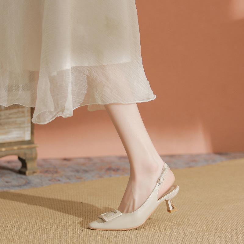 Тонкие каблуки темперамент одиночные туфли женские летние новые кожаные квадратные туфли из мягкой кожи женские с сандалиями