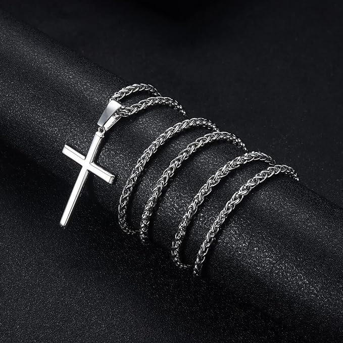 925 Серебро Хирургическая Нержавеющая Цепочка Крест Крест Дюймы [JeryWe] Ожерелье, Гипоаллергенный, Сталь, Ожерелье, Цепочка, Ожерелье, Крест, Ожерелье, Серебро,