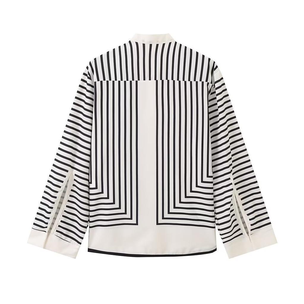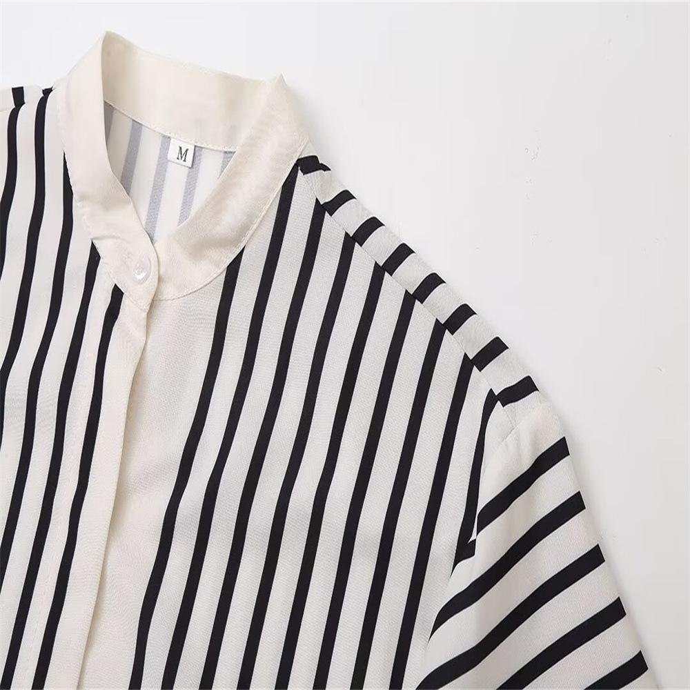 Повседневные полосатые шелковые рубашки женские свободные однобортные с длинными расклешенными рукавами рубашки блузки женские осенние женские топы