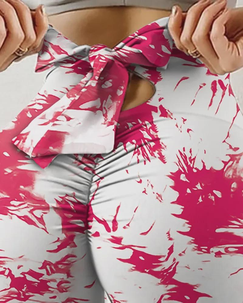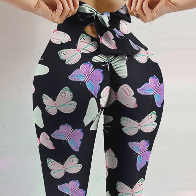 Женские леггинсы для йоги с высокой талией: Эластичный, впитывающий пот, с цифровой печатью, с бантом-веревкой