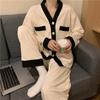 Повседневная женская пижама с V-образным вырезом и пуговицами, весенняя повседневная простая пижама для женщин с длинным рукавом, женская одежда для сна