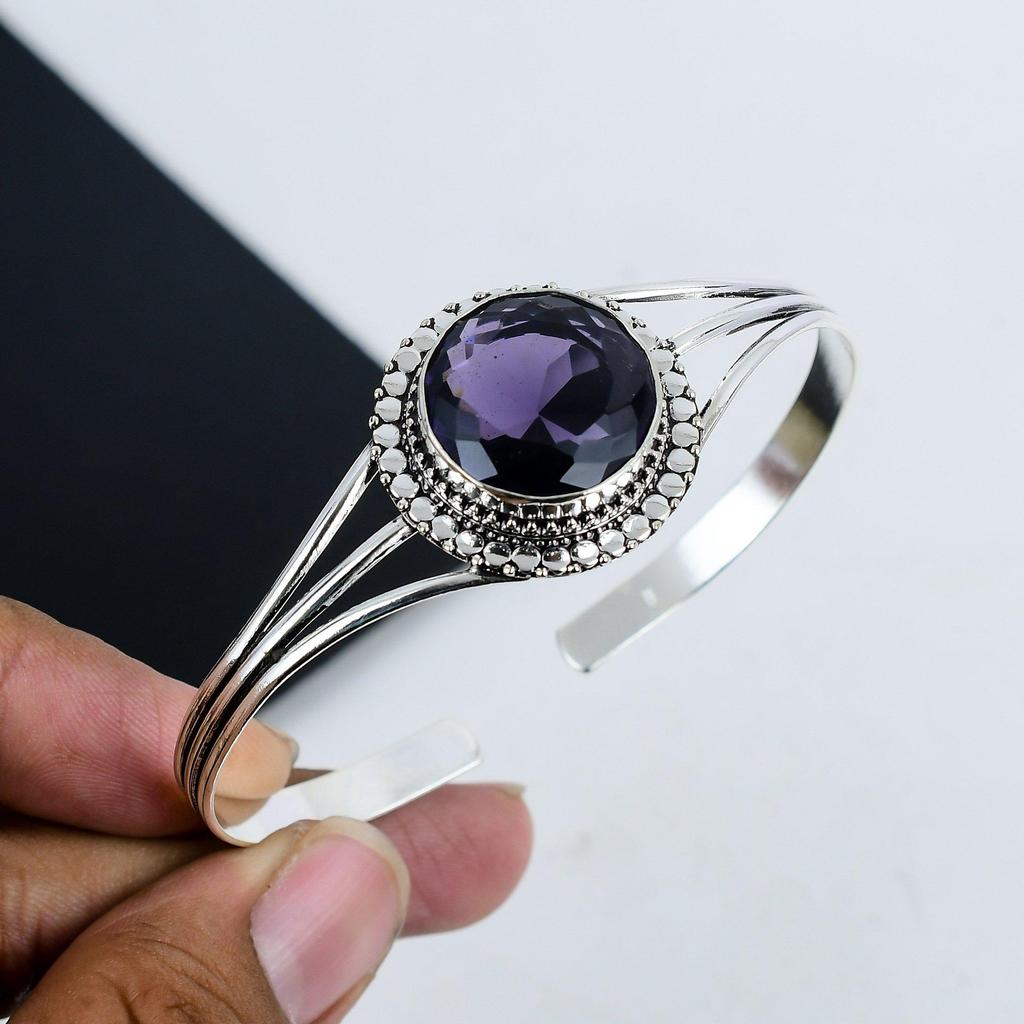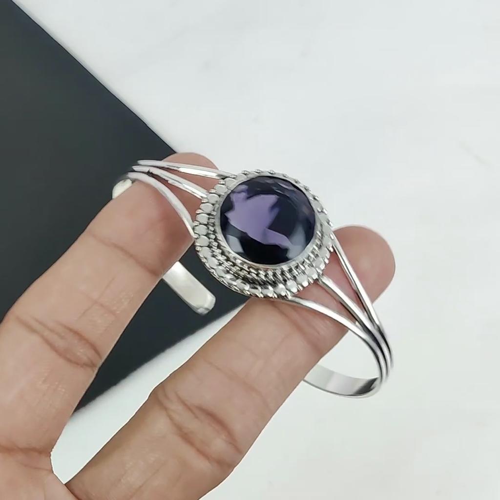 Изящный браслет-манжета с аметистовым драгоценным камнем, браслет-манжета из стерлингового серебра 925 пробы, браслет-манжета с аметистом для жены, браслет унисекс, подарок на день рождения